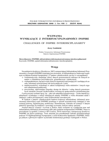 WYZWANIA WYNIKAJ¥CE Z INTERDYSCYPLINARNOŚCI INSPIRE