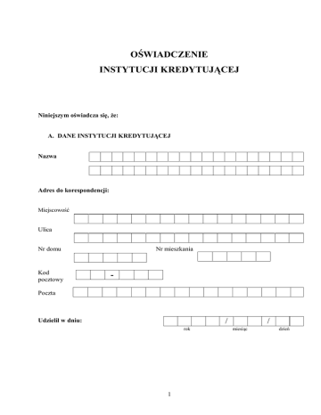 OŚWIADCZENIE INSTYTUCJI KREDYTUJĄCEJ