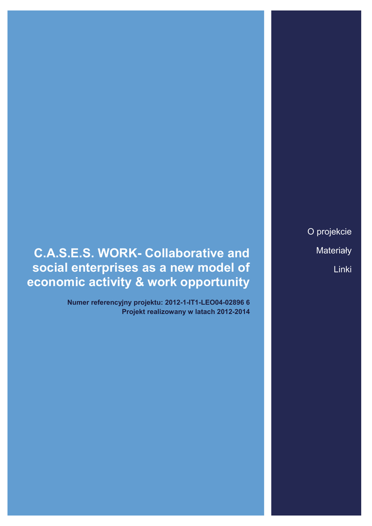 O projekcie C.A.S.E.S. WORK- Collaborative and social enterprises as a new model of economic activity & work opportunity Numer referencyjny projektu: 2012-1-IT1-LEO04-02896 6 Projekt realizowany w latach 2012-2014 Materiały Linki Dowiedz się więcej Linki C.A.S.E.S.WORK strona internetowa C.A.S.E.S. WORK - Collaborative and social enterprises as a new model of economic activity & work opportunity C.A.S.E.S.WORK blog C.A.S.E.S.WORK Facebook Ulotka informacyjna EN „C.A.S.E.S. WORK - współdzielenie, współpraca oraz elementy ekonomii społecznej w przedsiębiorczo ści – nowy model prowadzenia działalności gospodarczej i nowe Partnerzy projektu; możliwości na rynku pracy..” jest Projektem Partnerskim Leonardo da Provincial National Education Vinci realizowanym przez krakowską Directorate of Eskisehir, fundację Euro-Idea Fundacja SpołecznoTURKEY Kulturalna w latach 2012-2014. Projekt Agrupamento de Escolas de Arganil, Arganil, swym zasięgiem obejmuje 15 krajów PORTUGALIA Europy. P Euro-Idea Fundacja Społeczno-Kulturalna PL POLSKA LOA - LANZAROTE OCEAN ART, PLAYABLANCA, HISZPANIA VŠĮ “Žinių kodas”, Vilnius , LITWA НАЦИОНАЛЕН ФОРУМ АЛТЕРНАТИВИ, ПРАКТИКИ, ИНИЦИАТИВИ, PLOVDIV, BUŁGARIA CESEP Centre Socialiste d’Education Permanente , Nivelles, BELGIA Multikulturelles Netzwerk , Wien , AUSTRIA Prolog GmbH , Rotkreuz , SZWAJCARIA SEEDS, SEE beyonD borderS , Reykjavik , ISLANDIA Belvarosi Tanoda Alapitvanyi , Budapest , WĘGRY Pathways: Inspirational Development CIC , Newtown , WIELKA BRYTANIA CMO Groningen , Groningen , HOLANDIA HANDI JOBS, o.s. , Dětmarovice , CZECHY Association ESENIORS , Paris , FRANCJA W okresie światowego kryzysu gospodarczego, skutkującego spadkiem poziomu życia dla dużych grup ludności, konsumpcjonizm połączony z logiką zysku za wszelką cenę nie wytrzymuje presji nowej rzeczywistości. Cel projektu : Głównym założeniem projektu jest zapewnienie w zmieniających się realiach gospodarczych nowych kompetencji zawodowych, dostosowanych do potrzeb rynku pracy oraz innowacyjnych przedsiębiorstw. Planowane działania oraz rezultaty projektu to: Opracowanie kompendium dobrych praktyk dotyczacych nowego modelu przedsiębiorczości opartego na zasadach współdziałania oraz elementach ekonomii społecznej (tzw. Social & Collaborative enterprise); Dostarczenie nowoczesnych narzędzi edukacyjnych, takich jak przewodniki w formie e-book dla zakładających przedsiębiorstwa start-up, zapewnieniając im odpowiednie informacje, wskazówki i zasoby. Udział w nowych i stymulujących doświadczeniach takich jak wizyty studyjne lub szkolenia w przedsiębiorstwach działających w duchu Social & Collaborative enterprise; Utworzenie strony internetowej projektu. Projekt zostanie zrealizowany we współpracy piętnastu partnerskich instytucji z piętnastu krajów. Projekt przewiduje zaangażowanie licznych podmiotów prywatnych i instytucji publicznych oraz możliwość wymiany doświadczeń pomiędzy nimi. Beneficjenci projektu to: nowopowstałe, prywatne przedsiębiorstwa start-up; bezrobotni poszukujący zatrudnienia; przedsiębiorstwa, które badają nowe/potencjalne możliwości w zmieniających się realiach gospodarczych; władze oraz wspólnoty lokalne, które wspierają aktywne uczestnictwo i otwarty dostęp do pełnego wykorzystane zasobów publicznych. „Ten projekt został zrealizowany przy wsparciu finansowym Komisji Europejskiej. Projekt lub publikacja odzwierciedlają jedynie stanowisko ich autora i Komisja Europejska nie ponosi odpowiedzialności za umieszczoną w nich zawartość merytoryczną.”