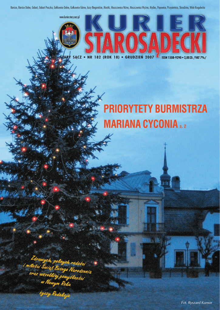 Barcice, Barcice Dolne, Gaboń, Gaboń Praczka, Gołkowice Dolne, Gołkowice Górne, Łazy Biegonickie, Mostki, Moszczenica Niżna, Moszczenica Wyżna, Myślec, Popowice, Przysietnica, Skrudzina, Wola Krogulecka www.kurier.stary.sacz.pl STARY SĄCZ • NR 182 (ROK 18) • GRUDZIEŃ 2007 ISSN 1508-9290 • 2,00 ZŁ /VAT 7%/ PRIORYTETY BURMISTRZA MARIANA CYCONIA s. 2 Zdrowych, pełny i miłości Świąt B ch radości ożego oraz wszelkiej p Narodzenia omyślności w Nowym Roku życzy Redakcja Fot. Ryszard Kumor Strona 2 KURIER STAROS¥DECKI • XII • 2007 Fot. R. Kumor PRIORYTETY BURMISTRZA MARIANA CYCONIA Panie Burmistrzu, które projekty lub inwestycje w roku jubileuszu 750-lecia Starego Sącza najbardziej przysłużyły się podniesieniu jakości życia mieszkańców i rozwojowi gminy? Zdecydowanie przeobrażenie funkcjonalno - użytkowe obszaru średniowiecznego Rynku wraz z otaczającymi go ulicami, przy jednoczesnym zachowaniu i częściowym odtworzeniu walorów historycznego układu urbanistycznego. Zarówno wartość tej inwestycji, ponad 9,9 mln zł, w tym ok. 6,3 mln z funduszy unijnych, jak i zakres robót jest powodem do wielkiej satysfakcji. Pozytywne głosy po zakończeniu tych prac docierają do mnie nawet z zagranicy. Dodatkowo, dzięki pozyskaniu środków z budżetu państwa, za pośrednictwem Ministra Kultury i Dziedzictwa Narodowego oraz Wojewódzkiego Konserwatora Zabytków wykonana została pierwsza część prac konserwatorskich w klasztorze sióstr Klarysek, kościele parafialnym św. Elżbiety i kościele świętego Rocha. Remontowi poddano 11 zabytkowych budynków w pierzejach przyrynkowych, należących do podmiotów gospodarczych i osób fizycznych. Ponad 57 mln zł będzie kosztować rozpoczęta w lecie budowa obwodnicy, z wiaduktem nad torami kolejowymi i mostem na Dunajcu. To największa inwestycja drogowa na Sądecczyźnie w ostatnich latach, która ma być gotowa już w I kwartale 2008 r. Unia Europejska wyłożyła na ten cel 36,5 mln zł, natomiast Województwo Małopolskie 20,5 mln zł. Chciałbym tą drogę chroniącą miasto i usprawniającą zastały od setek lat układ komunikacyjny w regionie nazwać imieniem 750–lecia Starego Sącza. Warto jeszcze powiedzieć o wybudowaniu nowocześnie wyposażonej Kaplicy Przedpogrzebowej, której nie było do tej pory w Starym Sączu, o pięknie urządzonym Parku Miejskim, z fontanną i placykiem zabaw dla dzieci, o modernizacji „rynku maślanego”. Osobną kwestią jest uwolnienie płyty rynku od uciążliwego ruchu i nieporządku związanego ze środowymi jarmarkami oraz nowa lokalizacja placu targowego koło stacji PKP. Jeszcze w tym roku rozpoczyna działalność Środowiskowy Dom Samopomocy dla niepełnosprawnych, w zaadaptowanym budynku dawnego przedszkola w Cyganowicach. Jedna z nielicznych placówek tego typu w regionie, spełniająca rolę DPS, ale będąca jednostką niepubliczną. Został już rozstrzygnięty konkurs na prowadzenie zajęć i administrowanie domem. Miastu przybyło też kilka wartościowych i pięknych publikacji jubileuszowych. Jubileusz miasta i wykonane w ubiegłym i tym roku inwestycje oraz różne działania w sferze kultury zapiszą się pięknie w historycznych kronikach, ale rozwój miasta i gminy wymaga dalszych konsekwentnych działań. Jakie są Pana priorytety na przyszły rok i kolejne lata? Jeszcze raz serdecznie dziękuję wszystkim, którzy w jakikolwiek sposób przyczynili się realizacji jubileuszowych przedsięwzięć. Osobne podziękowania kieruję do zacnych gości z kraju i zagranicy, turystów i pielgrzymów, którzy odwiedzili w tym roku Stary Sącz. Nasze miasto ma fantastyczną historię, a dzięki kolejnym inwestycjom, przebudowie i rewitalizacji najważniejszych jego fragmentów jest coraz piękniejsze. Turyści i pielgrzymi coraz wyraźniej dostrzegają niebywałe walory historyczne, estetyczne i duchowe miasta. Dla większości z nich Stary Sącz to przede wszystkim sanktuarium św. Kingi. W tym roku klasztor Klarysek odwiedziło ponad 600 tys. pielgrzymów. Mniszki otrzymują tygodniowo ok. 800 podziękowań za modlitwy i wstawiennictwo św. Kingi. O naszym mieście można powiedzieć, że to małe, beskidzkie Lourdes. Dla pielgrzymów, oprócz klasztoru, tętniącego od wieków serca tej ziemi, duże znaczenie ma także kaplica z św. Kingi na Podmajerzu i wytryskające obok źródło. Wierni są głęboko przekonani o leczniczej skuteczności źródlanej wody, a wielu świadków przesłuchanych w procesach beatyfikacyjnych i procesie kanonizacyjnym zeznawało pod przysięgą, że po obmyciu się nią odzyskiwało zdrowie, albo zaświadczało jak inni doznawali uzdrowienia. Staram się o fundusze, które pozwoliłyby już w przyszłym roku doprowadzić do odrestaurowania kaplicy i przystosowania otoczenia do przyjmowania tysięcy pielgrzymów. Na pewno to niezwykłe miejsce w Beskidzie Sądeckim warte jest podniesienia do większej, może nawet europejskiej rangi. Niedawno został Pan wybrany wiceprzewodniczącym Zarządu Stowarzyszenia Gmin i Powiatów Małopolski. Wcześniej skutecznie występował Pan na tym forum m.in. w sprawie poparcia ustanowienia św. Kingi patronką samorządowców. Jakie projekty będzie Pan teraz promował w Stowarzyszeniu? Moim największym marzeniem ostatnich lat i olbrzymią szansą dla regionu jest budowa lotniska komunikacyjnego w Starym Sączu, w dzielnicy Kamieniec. Podczas XX Walnego Zebrania SGiPM podjęliśmy uchwałę - wniosek do Ministra Transportu o wpisanie małego lotniska komunikacyjnego w Starym Sączu na listę inwestycji finansowanych z budżetu państwa, środków Małopolskiego Regionalnego Programu Operacyjnego lub Funduszu Spójności Unii Europejskiej. Najważniejszym argumentem uzasadniającym tę inwestycję jest położenie Sądecczyzny z dala od autostrad i dróg szybkiego ruchu. Lotnisko byłoby naszym oknem na świat. Warto zwrócić uwagę, że obok wytypowanej lokalizacji już wkrótce pr