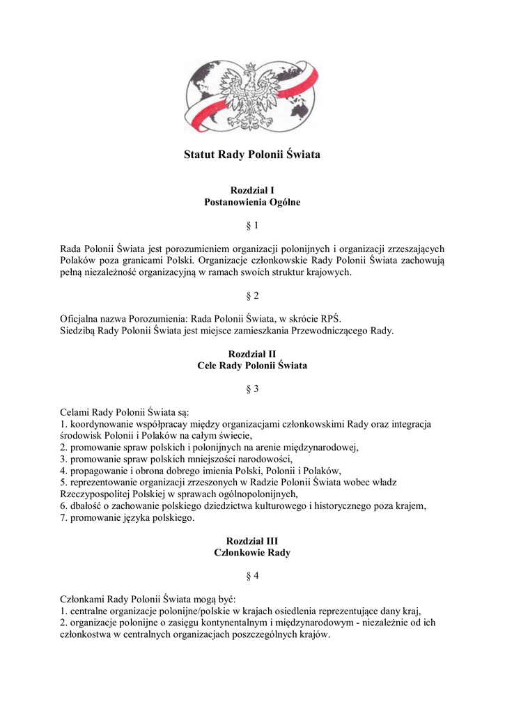 Statut RPŚ - Rada Polonii Świata