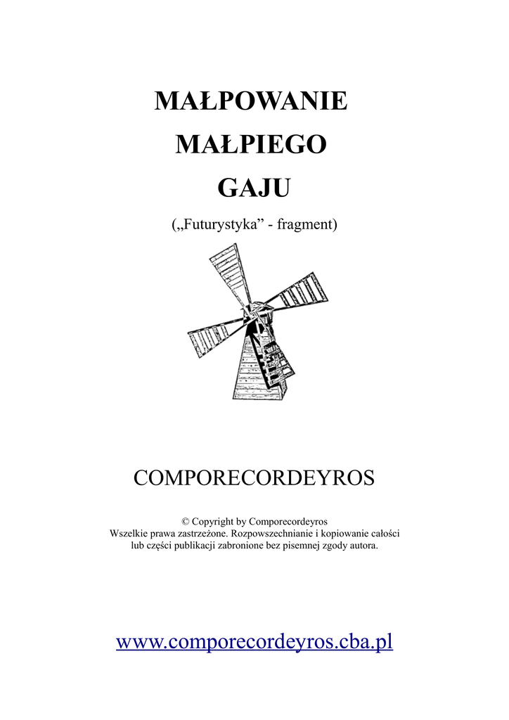 MAŁPOWANIE MAŁPIEGO GAJU („Futurystyka” - fragment) COMPORECORDEYROS © Copyright by Comporecordeyros Wszelkie prawa zastrzeżone. Rozpowszechnianie i kopiowanie całości lub części publikacji zabronione bez pisemnej zgody autora. www.comporecordeyros.cba.pl Teoretycznie nic nie wskazuje na to, aby siły działające w czarnej dziurze nie mogły wyzwalać pochłoniętej energii w innym czasie, a nawet w innym miejscu... W innym czasopunkcie. Ciekawe problemy mechaniki kwantowej z dziwnymi zachowaniami kwantów energii, podrzucają wyobraźni ochotę do różnych hipotez. Być może przestrzeń jest głębiej związana z materią i energią niż przypuszczamy. Moja hipoteza wywodzi się ze spostrzeżenia, że wszelkie skupienie energii dąży do rozprzestrzeniania się. Nie chodzi bynajmniej tylko o zjawiska związane z różnicą ciśnień, ale o ogólny charakter energii, która rozprzestrzenia się gdzie tylko może. Dopiero splątanie sił jakby załamuje przestrzeń w coś, co trwale zawiązało się we wzajemne splątanie poszczególnych sił dążenia do rozprzestrzenienia swej energii. Być może więc kwant jest takim załamaniem się - zawirowaniem przestrzeni, w jakiś może elementarny sposób powodując związanie przestrzeni w energię - materię, by zaplątać się następnie w dalsze zawiłości - zawirowania, by powstały jako stabilne węzły przestrzeni->energii->materii: protony, elektrony, atomy, cząsteczki. W ten sposób materia byłaby w istocie przestrzenią, ale związaną w potężną trwałą komplikację swych załamań - zawirowań, obserwowaną w czasie jako energia (E=mc2). Energię obserwujemy jako stan materii, a materia jest zwiniętą w skomplikowany sposób pustą przestrzenią. Gdyby nagle jakaś część materii "rozwiązała się" całkowicie, lub w jakimś stopniu, przestrzeń uwalniając się wyzwoliłaby potężną energię rozprzestrzeniania się. Tak jakby atom zawierał w sobie stosunkowo wielką pustą przestrzeń. Może więc intuicyjna akceptacja prawybuchu wiąże się bardziej z modelem początkowym, niż z rzeczywistym początkiem. Początkiem mogło być załamanie się - zawirowanie pustej przestrzeni, które wydarzyło się gdy jeszcze nie było czasu. I dopiero gwałtownie mnożące się zaburzenie absolutnej pustki, pulsując "wariującymi" zwinięciami i rozprężeniami absolutnej pustki, zapłonęło "światłem" w ciemności... Dla obserwatora "zewnętrznego" widzianym jako nagły wybuch - nagłe pojawienie się czasu. Może w ten sposób "słowo" jako swego rodzaju metafizyczne zawirowanie w pustce mogło być jaknajbardziej na początku. I z "niego wszystko powstało"... Tak, to szokujące podobieństwo starych baśni do rzeczywistości mechaniki kwantowej może powodować zawirowania na giełdach... Wszyscy wiemy czym grozi wybuch supernowej, a są też badacze którzy obawiają się wybuchu całego kosmosu... Przyznaję, że nie wiem dokładnie na jakich zasadach odbywają się te wielkie wybuchy, ale jako fantasta, mogę różne koncepcje kombinować intuicyjnie. Zobaczę więc jak czarna dziura sprawdzałaby się w roli swoistego kosmicznego strażnika, zabezpieczającego przed gwałtownym rozwiązaniem się materii w pustkę (pustą przestrzeń). Czarna dziura mogłaby przenosić zbytnio skoncentrowaną materię - energię do innego czasopunktu, w którym zawarta w tej materii - energii przestrzeń... już byłaby przestrzenią... Dla obserwatora zewnętrznego zapobiegając wybuchowi rozprzestrzennienia, a jednocześnie realizując potencjał przestrzeni, który bez czarnej dziury musiałby się skończyć wybuchem kosmicznym rozwiązującej się (zawsze kiedyś w końcu) materii. O zgrozo! czarna dziura też została przewidziana przez duchową intuicję wielkich natchnień... Żywcem przypomina oddech Brahmy... który wchłania światy, by po eonach wyzwalać je ponownie. To co najmniej mnie zmusza do zastanowienia się, co też my nie mamy zawartego w zjawisku, którego jesteśmy uczestnikami i posiadaczami, zwanym świadomością. Świadomość może zawierać w sobie pustą przestrzeń w wielkiej ilości... To żywcem przypomina nirwanę, stan uwolnienia ducha... z którym według mądrości należy się pojednać. Czyli dla naszej prastarej intuicji i natchnienia jesteśmy czymś zupełnie nie podobnym do "zasobów materiału ludzkiego", a raczej potencjalnie przypominamy bogów. Wtedy historia naszych upadków i niedomagań, przestaje być ciemną zabobonną magią, a zaczyna czarować nieskończoną przyszłością. Która co najmniej w przypadku ubóstwienia, jest sama w sobie energią. I tak doszliśmy (dla autora też niespodziewanie) do kwestii uduchowienia świata materialnego... Które to uduchowienie może się okazać jaknajbardziej fizyczną rzeczywistością, z punktu widzenia nowoczesnej fizyki kwantowej. Wtedy będziemy się musieli przyzwyczaić do sytuacji posiadania czegoś, czego w żaden sposób nie da się policzyć, ale daje się to pojąć i uświadomić sobie, czyli do posiadania najogólniej pojętego dobra. A to przecież sytuacja wymarzona przez wszelkie uniesienia ludzkiego umysłu i intuicji. Czyli przewiduję tu, że fizyka teoretyczna w pewnym sensie powróci do swych korzeni i nie będzie starała się skorzystać na czymś, co jest przez człowieka i jego czasoprzestrzeń, dzięki Bogu, w pełni wykorzystane. A pojedna się z rajem wiecznego pojmowania rzeczywistości. Wyzwalając tym samym inżynierię zagospodarowania kosmosu od heroicznego zamieszania przy niepotrzebnym obliczaniu wszystkiego... Małpowania małpiego gaju. Inżynieria to zdolność do obliczania poszczególnych, praktycznych rzeczy. Chodzi mi tu o przekierowanie ludzkości z przesadnie niekonwencjonalnych kierunków magiczno-eksperymentalnych kombinujących wokół tyłka umysłu i próbujących jak niegdyś dzicy krzemienie, zderzać protony, w stronę zabudowy orbit co bardziej opłacalnych planet... do z