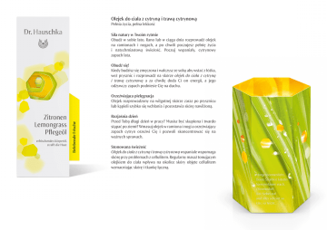Olejek do ciała z cytryną i trawą cytrynową Pełnia życia, pełna lekkość Siła natury w Twoim rytmie Obudź w sobie lato. Rano lub w ciągu dnia rozprowadź olejek na ramionach i nogach, a po chwili poczujesz pełnię życia i natychmiastową świeżość. Poczuj wspaniały, cytrynowy zapach lata. Obudź się! Kiedy budzisz się zmęczona i walczysz ze sobą aby wstać z łóżka, weź prysznic i rozprowadź na skórze olejek do ciała z cytryną i trawą cytrynową a za chwilę doda Ci on energii, a jego odżywczy zapach podniesie Cię na duchu. Orzeźwiająca pielęgnacja Olejek rozprowadzony na wilgotnej skórze zaraz po prysznicu lub kąpieli szybko się wchłania i pozostawia skórę nawilżoną. Rozjaśnia dzień Przed Tobą długi dzień w pracy? Musisz być skupiona i twardo stąpać po ziemi? Wmasuj olejek w ramiona i nogi a orzeźwiający zapach cytryn orzeźwi Cię i pozwoli skoncentrować się na ważnych sprawach. Stonowana świeżość Olejek do ciała z cytryną i trawą cytrynową wspaniale wspomaga skórę przy problemach z cellulitem. Regularny masaż tonującym olejkiem do ciała wpływa na okolice skóry objęte cellulitem wzmacniając skórę i tkankę łączną.