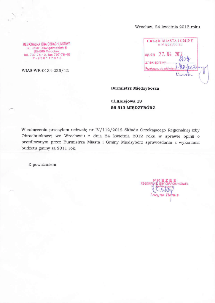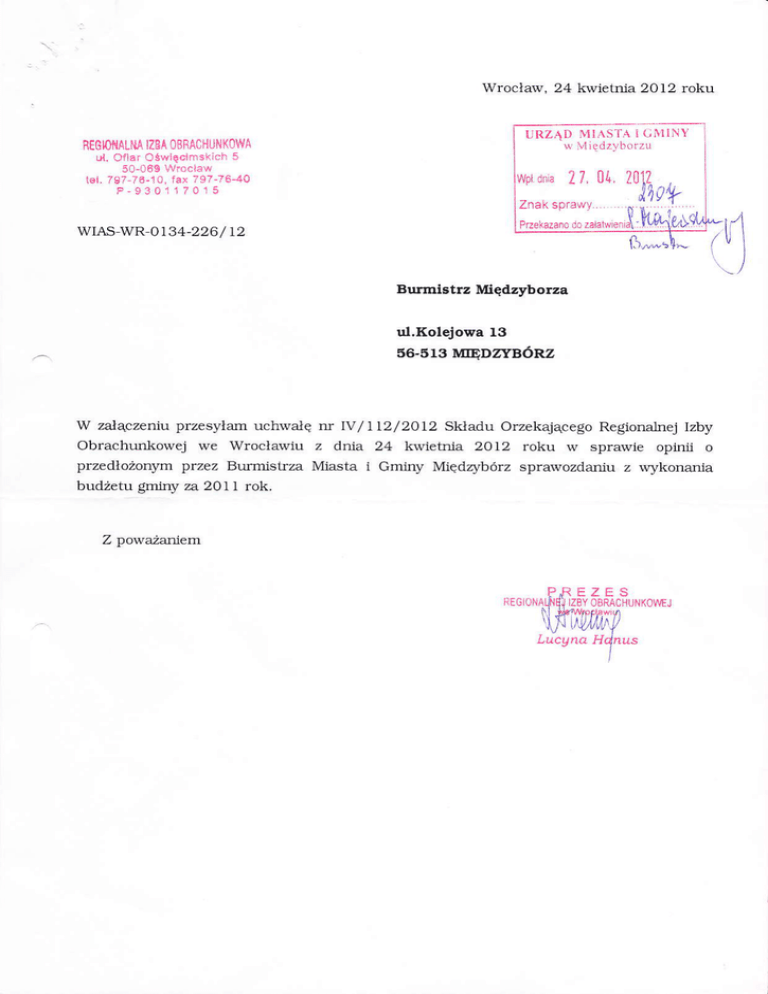 rożdysponowarfa przedłoźonymiRegionalnej lzbie obrachur rowej we Wroclawiu.