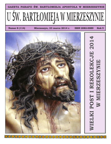 GAZETA PARAFII ŚW. BARTŁOMIEJA APOSTOŁA W MIERZESZYNIE Mierzeszyn, 23 marca 2014 r. ISSN 2082-0089 Rok 5 WIELKI POST I REKOLEKCJE 2014 W MIERZESZYNIE Numer 8 (114) U ŒW. BART£OMIEJA W MIERZESZYNIE - nr 8 (114) 23 marca 2014 2 U ŒW. BART£OMIEJA W MIERZESZYNIE - nr 8 (114) 23 marca 2014 3 Benedykt XVI przerywa milczenie - wywiad dla polskiego dziennikarza. Fragment przedruku za pozwoleniem Tygodnika Katolickiego „Niedziela”, nr 11 (2014). MOJE ŻYCIE PRZY ŚWIĘTYM W£ODZIMIERZ RÊDZIOCH: - Nazwiska kard. W ojty³y Wojty³y i kard. Ratzlngera zwi¹zane s¹ nierozerwalnie z Soborem W atykañskim II. Czy poznaliœcie siê w czasie Watykañskim prac soborowych? BENEDYKT XVI: - Pierwsze moje w pełni świadome spotkanie z kard. Wojtyłą miało miejsce dopiero w czasie konklawe, na którym został wybrany papież Jan Paweł II. Wprawdzie podczas Soboru pracowaliśmy razem nad Konstytucją duszpasterską o Kościele w świecie współczesnym, jednak w różnych sekcjach i dlatego nie spotkaliśmy się ze sobą. W czasie wizyty polskich biskupów w Niemczech (we wrześniu 1978 r.) byłem w Ekwadorze jako osobisty wysłannik Jana Pawła I. Kościół monachijsko-fryzyngijski jest w związku partnerskim z Kościołem Ekwadoru, utworzonym przez abp. Echeverrię Ruiza (Guayaquil) i kard. Dópfnera. Dlatego, ku swemu wielkiemu żalowi, straciłem okazję osobistego spotkania się wtedy z krakowskim arcybiskupem. Słyszałem, oczywiście, o jego pracy filozoficznej i duszpasterskiej i od dawna pragnąłem się z nim poznać. Ze swej strony Karol Wojtyła czytał moje ,,Wprowadzenie w chrześcijaństwo”, a także przytaczał je w rekolekcjach, które w Wielkim Poście w roku 1976 głosił dla Pawła VI i Kurii. W duchu niejako czekaliśmy więc obydwaj na spotkanie ze sobą. Metropolitę krakowskiego od początku darzyłem głębokim szacunkiem i serdeczną sympatią. Podczas prekonklawe w roku 1978 dokonał on dla nas analizy istoty marksizmu, która wywarła na nas duże wrażenie. Przede wszystkim jednak bardzo wyraźnie od razu odczułem promieniowanie jego człowieczeństwa, a jego postawa modlitewna mówiła mi, jak głęboko jest zjednoczony z Bogiem. - Od pocz¹tku pontyfikatu Jan Pawe³ II pragn¹³ mieæ kard. Ratzingera przy sobie w Kurii Rzymskiej. Z jakimi uczuciami zosta³a przyjêta papieska propozycja? - W roku 1979 Jan Paweł II powołał mnie na prefekta Kongregacji ds. Wychowania Katolickiego. Od moich święceń biskupich w Monachium upłynęły zaledwie dwa lata i uznałem za niemożliwe ponowne, tak szybkie, opuszczenie stolicy św. Korbiniana. Sakra biskupia była przecież w pewnym sensie przyrzeczeniem wierności złożonym mojej macierzystej diecezji. Dlatego poprosiłem wtedy Papieża o zrezygnowanie z tej nominacji. Na ten urząd powołał on wówczas kard. Bauma z Waszyngtonu, jednocześnie już wtedy jednak zapowiedział, że zwróci się do mnie z prośbą o pełnienie innego zadania. I rzeczywiście, w roku 1980 powiedział mi, że pod koniec roku 1981 będzie chciał zamianować mnie prefektem Kongregacji Nauki Wiary jako następcę kard. Śepera. Ponieważ nadal czułem się zobowiązany wobec swojej macierzystej diecezji, pozwoliłem sobie postawić warunek przyjęcia tego urzędu, uważany przeze mnie za niemożliwy do spełnienia. Powiedziałem, że czuję się w obowiązku dalszego publikowania prac teologicznych. Gdyby dało się to pogodzić z urzędem prefekta, wtedy tylko mógłbym go przyjąć. Papież, który zawsze okazywał mi wiele dobroci i wyrozumiałości, wyjaśnił mi, że poinformuje się w tej sprawie i wyrobi sobie opinię. Podczas następnej mojej wizyty oświadczył, że publikacje teologiczne dadzą się pogodzić z urzędem prefekta. Także kard. Garrone jako prefekt Kongregacji ds. Wychowania Katolickiego publikował dzieła teologiczne. Wobec tego przyjąłem wtedy tę funkcję, wiedząc, jak trudne jest to zadanie, jednak również ze świadomością, że teraz posłuszeństwo wobec Papieża zobowiązuje mnie do wyrażenia zgody. - Jak uk³ada³a siê wspó³praca miêdzy Papie¿em a Prefektem Kongregacji Nauki Wiary? - Współpraca z Ojcem Świętym zawsze była nacechowana przyjaźnią i zaufaniem. Przede wszystkim odbywała się ona na dwóch płaszczyznach: oficjalnej i prywatnej. Prefekt Kongregacji Nauki Wiary ma w każdy piątek o godzinie 18 audiencję u Papieża i przedkłada mu wtedy do rozstrzygnięcia aktualne problemy. Są to, rzecz jasna, w pierwszym rzędzie problemy dotyczące nauki wiary, także jednak kwestie dyscyplinarne: przeniesienie do stanu świeckiego proszących o to księży, udzielenie przywileju Pawiowego małżeństwom, w których jedna strona jest niechrześcijańska itd. Później dołączyły do tego bieżące prace nad Katechizmem Kościoła Katolickiego. Za każdym razem Ojciec Święty otrzymywał w odpowiednim czasie istotną dokumentację, znał więc już wchodzące w grę kwestie. W ten sposób zawsze mogliśmy prowadzić ze sobą owocną dyskusję nad problemami teologicznymi. Papież był bardzo oczytany, znał również najnowszą literaturę niemiecką i dla obydwu stron zawsze było piękną rzeczą szukanie w tych sprawach właściwych decyzji. Obok tych ściśle oficjalnych kontaktów były różnego rodzaju spotkania półoficjalne i nieoficjalne. Półoficjalnymi nazwałbym audiencje, podczas których w grupach ze zmieniającym się składem przez wiele lat omawiane były we wtorkowe przedpołudnia środowe katechezy. Papież podjął decyzję omawiania w nich Katechizmu; wcześniej podawał tematy i polecał przygotować pierwsze punkty widzenia, służące ich opracowaniu. Ponieważ na tych audiencjach zawsze byli obecni przedstawiciele rozmaitych specjalizacji, były to bardzo piękne i pouczające rozmowy, które chętnie wspominam. Również tutaj wychodziła na jaw teologiczna kompetencja Papieża. Jednocześnie jednak podziwiałem jego gotowość uczenia się. Papież miał