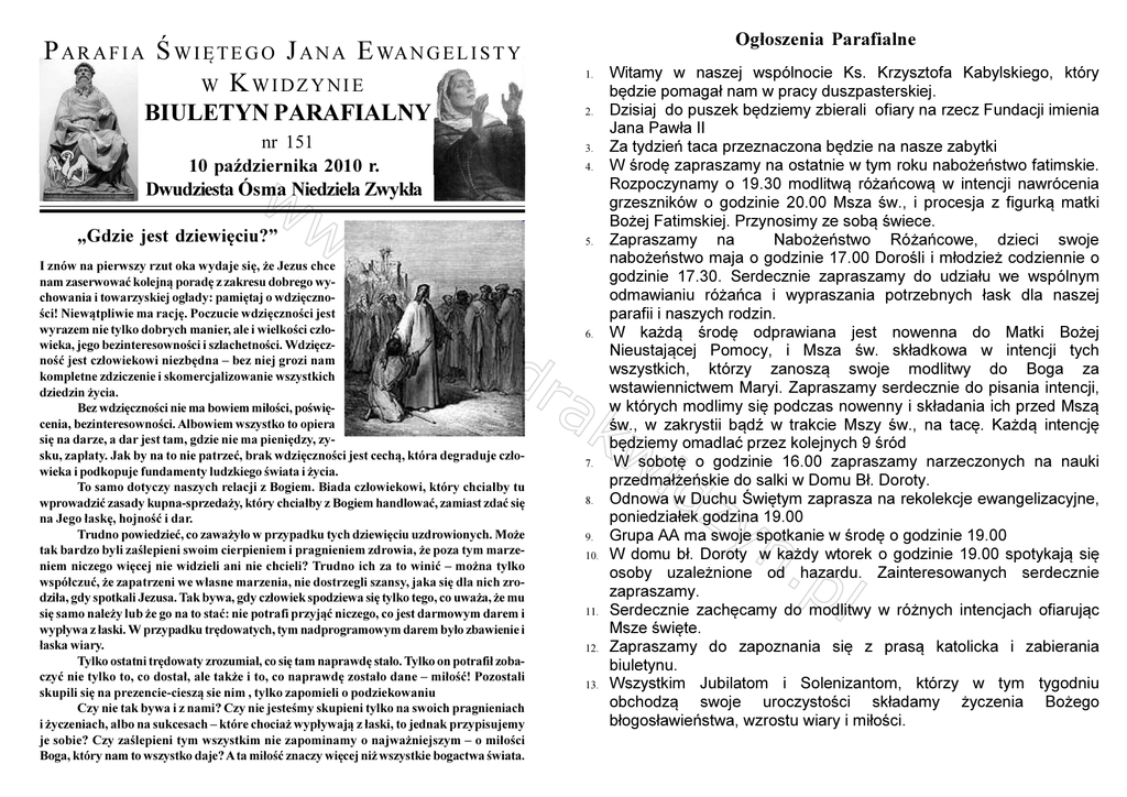 biuletyn parafialny - Parafia pw św. Jana Ewangelisty
