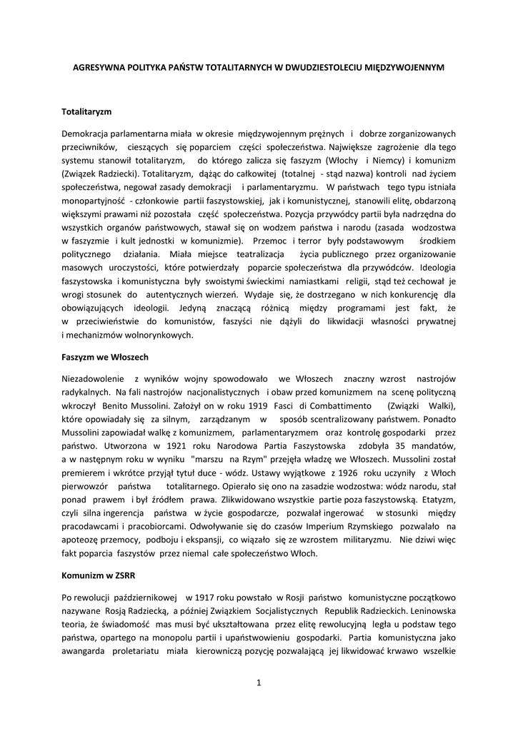 1 AGRESYWNA POLITYKA PAOSTW TOTALITARNYCH W
