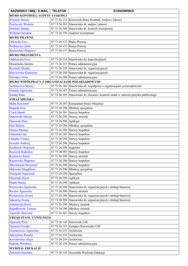 NAZWISKO I IMIĘ / E-MAIL TELEFON STANOWISKO 87 73 26 113