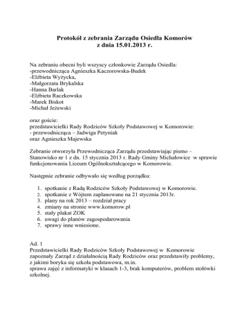 Protokół z zebrania Zarządu Osiedla Komorów z dnia 15.01.13 r.