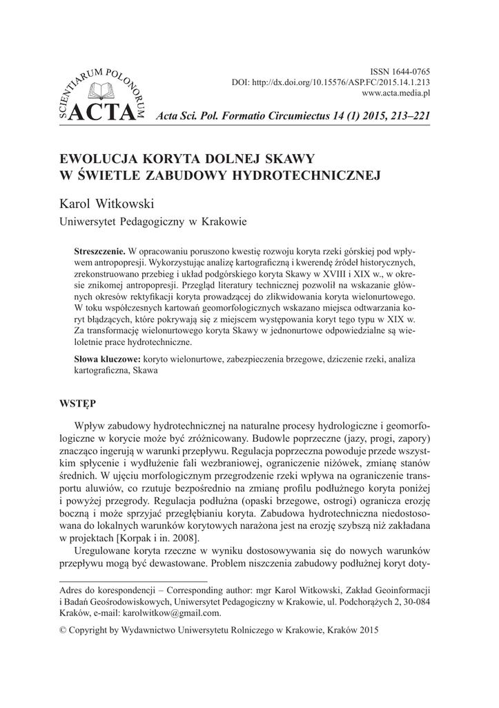 EWOLUCJA KORYTA DOLNEJ SKAWY W ŚWIETLE ZABUDOWY