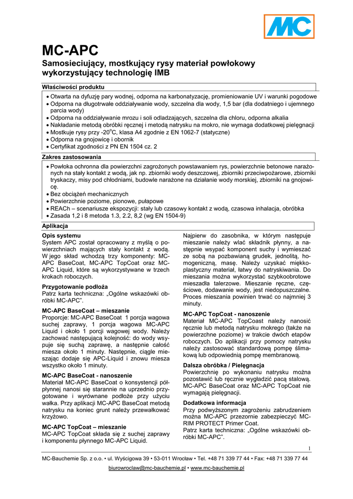 Karty techniczne MC-APC