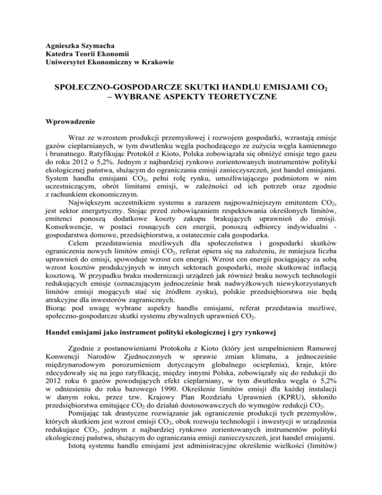 SPOŁECZNO-GOSPODARCZE SKUTKI HANDLU EMISJAMI CO2