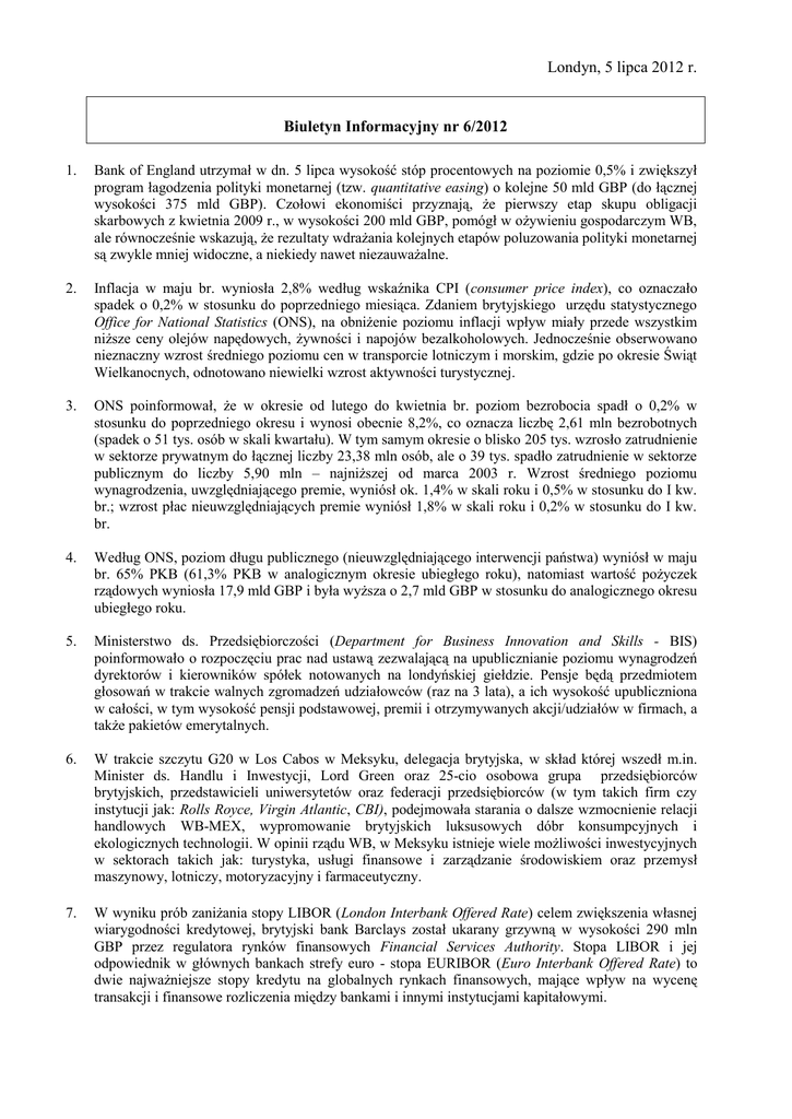 Biuletyn Informacyjny WE Londyn nr 6/2012
