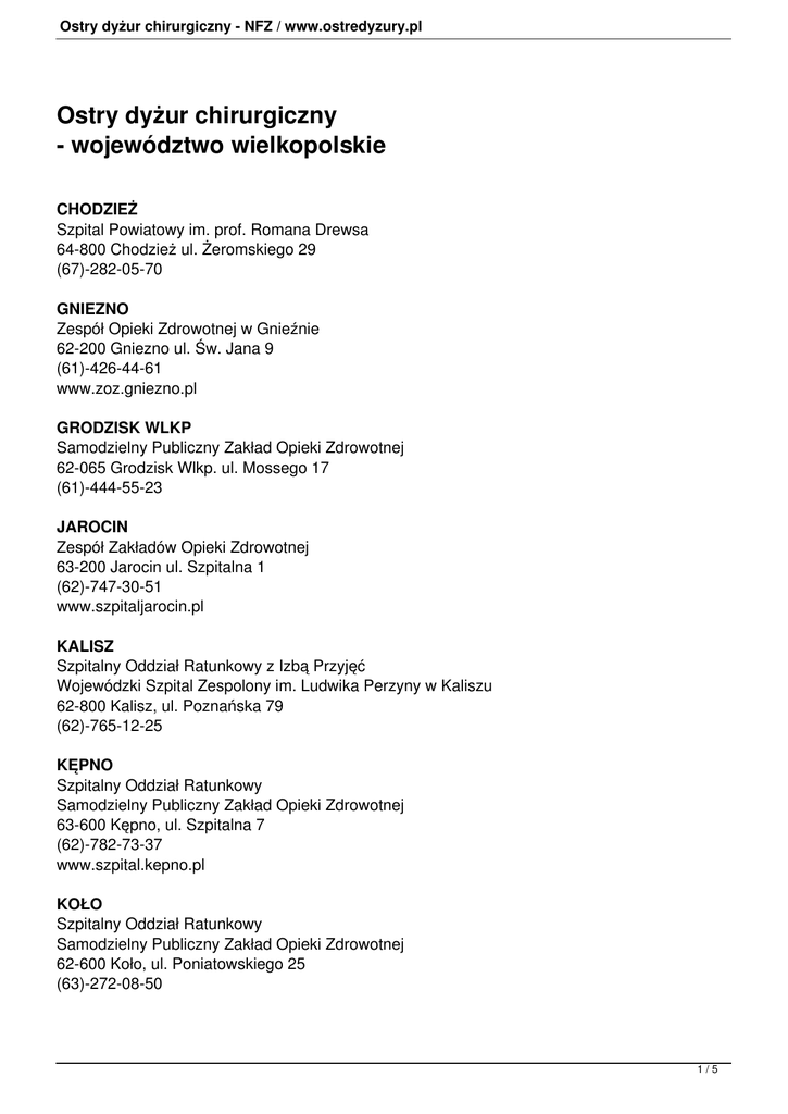 Ostry dyżur chirurgiczny - NFZ / www.ostredyzury.pl