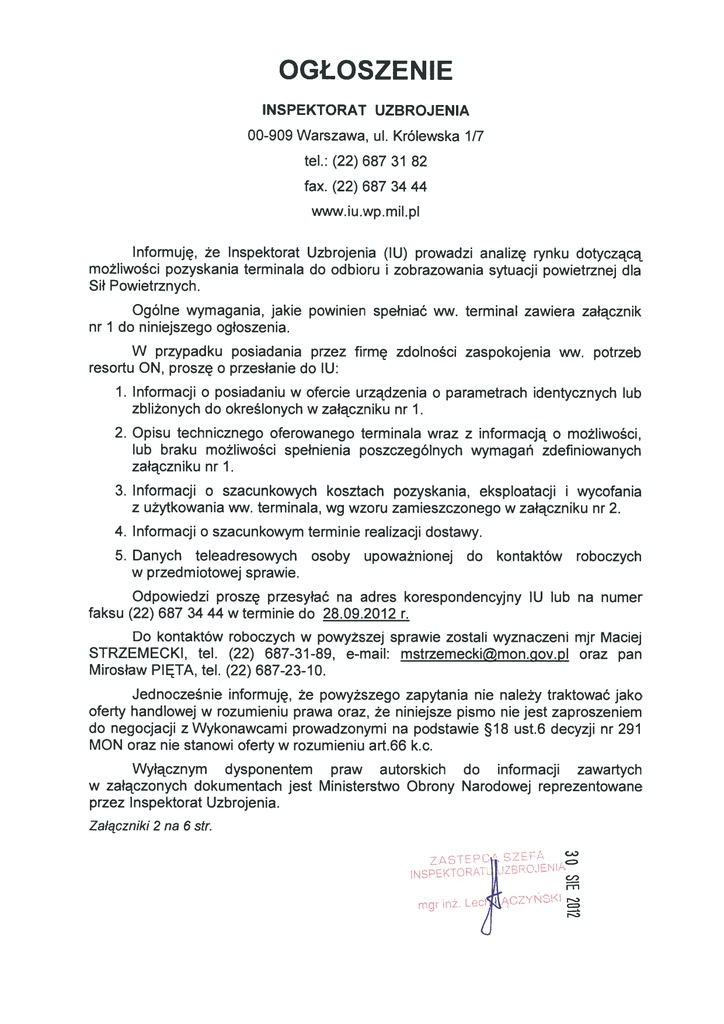 ogłoszenie - Inspektorat Uzbrojenia