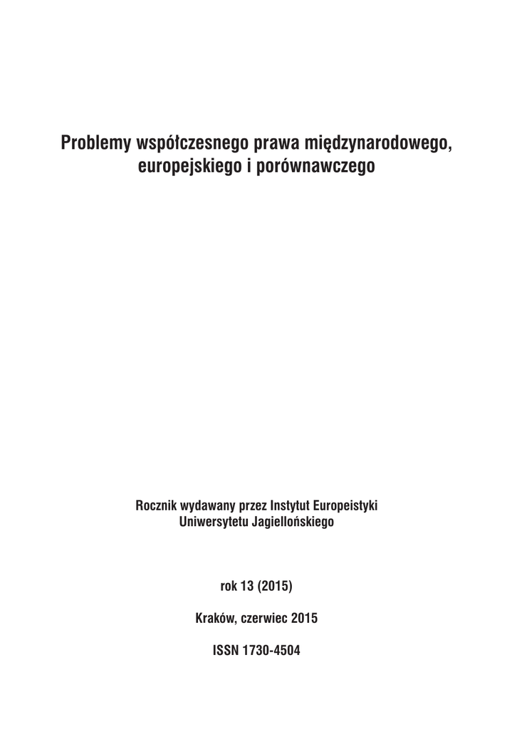 Problemy współczesnego prawa międzynarodowego, europejskiego i porównawczego Rocznik wydawany przez Instytut Europeistyki Uniwersytetu Jagiellońskiego rok 13 (2015) Kraków, czerwiec 2015 ISSN 1730-4504 Komitet redakcyjny: dr Wojciech BUREK (redaktor naczelny) dr Paweł FILIPEK (redaktor tematyczny) dr Ewa KAMARAD (sekretarz redakcji) Przewodniczący komitetów recenzyjnych: dr hab. Paweł CZUBIK Pełny skład komitetu recenzyjnego i rady programowej zob. http://www.europeistyka. uj.edu.pl/pwpm/lista-recenzentow Projekt okładki: Paweł FILIPEK Skład i łamanie: Piotr KORBIEL Korekta językowa: Anna KRZESZ Adres redakcji: Instytut Europeistyki UJ, ul. Jodłowa 13, 30-252 Kraków (korespondencję prosimy przesyłać z dopiskiem na kopercie: „PWPM – redakcja”) http://www.europeistyka.uj.edu.pl/wydawnictwa/pwpm Teksty prosimy przesyłać na adres: [email protected] lub na adres redakcji. UWAGA: Tekst powinien spełniać Kryteria Stylowe PWPM określone na stronie internetowej: http://www.europeistyka.uj.edu.pl/wydawnictwa/pwpm. W przypadku materiałów przesyłanych redakcji przez osoby nieposiadające co najmniej stopnia naukowego doktora nauk prawnych wymagane jest załączenie rekomendacji osoby z takim stopniem. Teksty przesłane do redakcji przechodzą dwuetapowy proces recenzyjny przeprowadzany przez recenzentów zewnętrznych. Regulamin PWPM – zob. http://www.europeistyka.uj.edu.pl/regulamin-wydawniczy-irecenzyjny. Autor, przesyłając tekst do rocznika, wyraża zgodę na umieszczenie po roku od ukazania się tekstu drukiem jego wersji elektronicznej na stronach internetowych Instytutu Europeistyki UJ w formule nieograniczonego dostępu. Wersją rozstrzygającą (pierwotną) jest wersja drukowana tekstów. Redakcja i wydawca nie zapewniają honorariów za opublikowane teksty. Każdy z autorów otrzyma natomiast 5 sztuk rocznika, w którym znajduje się jego tekst. Rocznik PWPM jest czasopismem punktowanym na liście MNiSW, jego ocena wynosi 3 punkty metryczne. Sugerowany sposób cytowania: PWPM 2015, vol. 13 Copyright: Instytut Europeistyki UJ. ISSN: 1730-4504. Ns-Rej. Pr: 170/09 Nakład: 500 egz. Druk i oprawa: Ekodruk Kolportaż: Stowarzyszenie INSTYTUT MULTIMEDIALNY ul. Oleandry 1, 30-060 Kraków www.imw.org.pl SPIS TREŚCI ARTYKUŁY IRENEUSZ C. KAMIŃSKI, PRAWO DO WOLNYCH WYBORÓW W EUROPEJSKIEJ KONWENCJI PRAW CZŁOWIEKA .................................................. 7 PIOTR KOBIELSKI, OPIEKA DYPLOMATYCZNO-KONSULARNA W ORZECZNICTWIE EUROPEJSKIEGO TRYBUNAŁU PRAW CZŁOWIEKA ......... 41 JOANNA MARKIEWICZ-STANNY, WOLNOŚĆ I BEZPIECZEŃSTWO OSOBISTE OSÓB UBIEGAJĄCYCH SIĘ O OCHRONĘ MIĘDZYNARODOWĄ – REFLEKSJE NA TLE PRZEKSZTAŁCONEJ DYREKTYWY RECEPCYJNEJ ............. 58 AGATA KLECZKOWSKA, REAKCJA PAŃSTWA NA NAPAŚĆ ZBROJNĄ ZE STRONY AKTORA NIEPAŃSTWOWEGO – UWAGI NA PRZYKŁADZIE DOKTRYNY UNWILLING OR UNABLE ........................................................................... 77 ŁUKASZ GRUSZCZYŃSKI, ŁUCJA NOWAK, JEDNOLITE OPAKOWANIA WYROBÓW TYTONIOWYCH A MIĘDZYNARODOWE PRAWO INWESTYCYJNE: UWAGI W KONTEKŚCIE SPORU PHILIP MORRIS ASIA LIMITED V. AUSTRALIA .............................................................. 99 JAKUB KOCIUBIŃSKI, EKSTRATERYTORIALNE STOSOWANIE PRAWA UNII EUROPEJSKIEJ DO KONTROLI KONCENTRACJI LINII LOTNICZYCH ...... 122 ŁUKASZ STĘPKOWSKI, NARUSZENIE PRAWA UE PRZEZ SĄD KRAJOWY W ODPOWIEDZIALNOŚCI ODSZKODOWAWCZEJ PAŃSTWA CZŁONKOWSKIEGO ...................................................................................................... 136 AGNIESZKA CZUBIK, RÓWNOUPRAWNIENIE JĘZYKÓW DYPLOMATYCZNYCH NA FORUM ORGANIZACJI MIĘDZYNARODOWYCH .... 160 PAWEŁ FILIPEK, SPRAWA SUKCESJI TRAKTATÓW W PRZYPADKU SPODZIEWANEJ NIEPODLEGŁOŚCI KURDYSTANU .............................................. 180 GLOSA MICHAŁ BALCERZAK, PROBLEM STOSOWANIA EUROPEJSKIEJ KONWENCJI PRAW CZŁOWIEKA DO OCENY WYDARZEŃ ODLEGŁYCH W CZASIE – GLOSA DO WYROKU ETPC W SPRAWIE O’KEEFFE PRZECIWKO IRLANDII Z DNIA 28 STYCZNIA 2014 R. (SKARGA NR 35810/09) .................................................................................................. 192 3 REFLEKSJE PAWEŁ CZUBIK, WPŁYW STOSUNKÓW MAJĄTKOWYCH MAŁŻEŃSKICH NA SKUTECZNOŚĆ DOKONANIA W AUSTRII CZYNNOŚCI ROZPORZĄDZAJĄCEJ UDZIAŁEM W NIERUCHOMOŚCI POŁOŻONEJ W POLSCE – UWAGI NA TLE POSTANOWIENIA SĄDU REJONOWEGO W GOSTYNINIE – WYDZIAŁ KSIĄG WIECZYSTYCH Z 31 STYCZNIA 2014 R. .................................................................................................. 205 JOANNA FARUGA, „PROBLEM WIEŻY BABEL” W PRAWIE KONKURENCJI UNII EUROPEJSKIEJ – ROZBIEŻNOŚĆ MIĘDZY RÓŻNYMI WERSJAMI JĘZYKOWYMI STRESZCZENIA DECYZJI KOMISJI EUROPEJSKIEJ W SPRAWIE COMP/39.579 ............................................................................................. 211 RECENZJA KATARZYNA SĘKOWSKA-KOZŁOWSKA, RECENZJA – CHARILAOS NIKOLAIDIS: THE RIGHT TO EQUALITY IN EUROPEAN HUMAN RIGHTS LAW. THE QUEST FOR SUBSTANCE IN THE JURISPRUDENCE OF THE EUROPEAN COURTS, ROUTLEDGE, LONDON&NEW YORK 2015 (SS. 238) .............................. 221 SPRAWOZDANIE OGÓLNOPOLSKIE SEMINARIUM NAUKOWE AKTUALNE PROBLEMY TRANSPORTU MIĘDZYNARODOWEGO, KRAKÓW, 25 WRZEŚNIA 2014 R. ................................................................................. 227 4 TABLE OF CONTENTS ARTICLES IRENEUSZ C. KAMIŃSKI, RIGHT TO FREE ELECTIONS IN THE EUROPEAN CONVENTION OF HUMAN RIGHTS ................................................................................ 7 PIOTR KOBIELSKI, DIPLOMATIC PROTECTION IN PRACTICE OF EUROPEAN COURT OF HUMAN RIGHTS .............................................................. 41 JOANNA MARKIEWICZ-STANNY, FREEDOM AND PERSONAL SECURITY OF PERSONS SEEKING INTERNATIONAL PROTECTION – REFLECTIONS ON THE RECAST RECEPTION DIRECTIVE .................................................................. 58 AGATA KLECZKOWSKA, STATE’S RESPONSE TO AN ARMED ATTACK CARR
