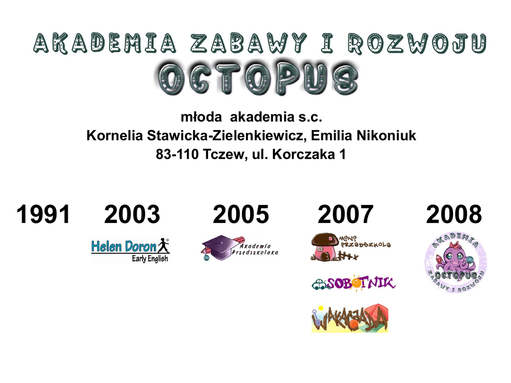 młoda akademia s.c. Kornelia Stawicka-Zielenkiewicz, Emilia Nikoniuk 83-110 Tczew, ul. Korczaka 1 1991 2003 2005 2007 2008 Pracownik gospodarczy Polskie Stowarzyszenie na Rzecz Osób z Upośledzeniem Umysłowym Koło w Gdańsku BIZON - obawa przed współpracą, - niesamodzielny, wymagający określonych procedur pracownik, + niski koszt zatrudnienia, + pomoc trenera pracy towarzyszącego pracownikowi, Stażysta Urzędy Pracy w Gdańsku i Tczewie, Wydział Staży, w ramach projektów EFS. - ograniczony wybór kandydatów, - kandydat przydzielany na czas 3 – 12 miesięcy, - pracownik niesamodzielny, wymagany jest opiekun, - okresowość programów, - formalności, + koszt zatrudnienia pokrywany przez urzędy pracy, + możliwość określenia dokładnych wymogów co do kandydata, + możliwość zatrudnienia po zakończeniu stażu, sprawdzonego pracownika. Studenci, Emeryci, Renciści. - brak doświadczenia, - przyzwyczajenia, - inne ograniczenia wynikające z posiadanej grupy, - ograniczenia co do czasu pracy, + niewysoki koszt zatrudnienia, + dyspozycyjność, + oddany, wdzięczny pracownik. Rozstrzygnięcie II edycji konkursu „Mama w pracy”. 19 maja 2009 Mama w pracy 7 Kategoria „MAŁE FIRMY” 8 Zdjęcia z rozdania nagród konkursu "Mama w pracy" 10 Matki i kobiety spodziewające się dzieci w naszej firmie. • dogodne zmiany, • elastyczny czas pracy, • możliwość skorzystania z przedszkola oraz programów edukacyjnych, • kącik dla matki karmiącej, • kącik zabaw dla dzieci, Matki i kobiety spodziewające się dzieci w naszej firmie. - kontrola ZUS, - konieczność wprowadzenia zastępstwa, + zadowolony pracownik, na którego możemy liczyć, + dialog dający poczucie bezpieczeństwa i możliwość planowania działań w firmie, + pomoc pracownika w przygotowaniu zastępstwa. Podsumowanie To charakter naszej firmy i wiara w relacje oraz dialog z drugim człowiekiem pozwalają nam korzystać, z istniejących możliwości zatrudniania matek, kobiet spodziewających się dzieci, niepełnosprawnych, emerytów oraz stażystów. „Kiedy śmieje się dziecko, śmieje się cały świat” J. Korczak