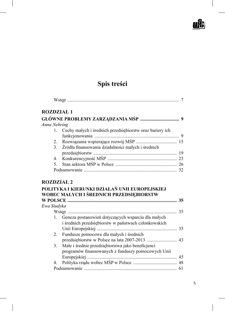 Spis treści Wstęp ............................................................................................... 7 ROZDZIAŁ 1 GŁÓWNE PROBLEMY ZARZĄDZANIA MŚP ................................. 9 Anna Nehring 1. Cechy małych i średnich przedsiębiorstw oraz bariery ich funkcjonowania ........................................................................ 9 2. Rozwiązania wspierające rozwój MŚP ................................... 15 3. Źródła finansowania działalności małych i średnich przedsiębiorstw ....................................................................... 19 4. Konkurencyjność MŚP ........................................................... 23 5. Stan sektora MŚP w Polsce .................................................... 26 Podsumowanie ............................................................................... 32 ROZDZIAŁ 2 POLITYKA I KIERUNKI DZIAŁAŃ UNII EUROPEJSKIEJ WOBEC MAŁYCH I ŚREDNICH PRZEDSIĘBIORSTW W POLSCE ............................................................................................. Ewa Siudyka Wstęp ............................................................................................. 1. Geneza postanowień dotyczących wsparcia dla małych i średnich przedsiębiorstw w państwach członkowskich Unii Europejskiej .................................................................... 2. Fundusze pomocowe dla małych i średnich przedsiębiorstw w Polsce na lata 2007-2013 ......................... 3. Małe i średnie przedsiębiorstwa jako beneficjenci programów finansowanych z funduszy pomocowych Unii Europejskiej ............................................................................ 4. Polityka rządu wobec MŚP w Polsce ..................................... Podsumowanie ............................................................................... 35 35 35 43 45 48 61 5 Spis treści ROZDZIAŁ 3 SKUTECZNE I EFEKTYWNE MODELE BIZNESU W MAŁYCH I ŚREDNICH PRZEDSIĘBIORSTWACH ................. Adam Jabłoński 1. Główne problemy funkcjonowania małych i średnich przedsiębiorstw w Polsce ....................................................... 2. Modele biznesowe w małych i średnich przedsiębiorstwach . 3. Procesy decyzyjne i strategie przedsiębiorstw sektora MŚP .. Podsumowanie ............................................................................... 63 63 68 73 81 ROZDZIAŁ 4 WDRAŻANIE STRATEGII WZROSTU WARTOŚCI W MAŁYCH I ŚREDNICH PRZEDSIĘBIORSTWACH ................. 83 Marek Jabłoński 1. Kreacja wartości w małych i średnich przedsiębiorstwach .... 83 2. Zarządzanie wartością małych przedsiębiorstw, a zarządzanie ryzykiem .......................................................... 93 3. Elementy zarządzania ryzykiem korporacyjnym ................... 98 Podsumowanie ............................................................................. 101 ROZDZIAŁ 5 6 ROZWÓJ MAŁYCH I ŚREDNICH PRZEDSIĘBIORSTW W WOJEWÓDZTWIE ŚLĄSKIM .................................................... Anna Nehring, Adam Jabłoński, Marek Jabłoński 1. Charakterystyka makroekonomiczna regionu ...................... 2. Nowoczesne technologie i innowacje w województwie śląskim .................................................................................. 3. Mikro, mali i średni przedsiębiorcy w województwie śląskim .................................................................................. 4 Badanie barier i czynników rozwoju MŚP w województwie śląskim ...................................................... Podsumowanie ............................................................................. 116 124 Zakończenie .......................................................................................... Literatura .............................................................................................. Spis tabel ............................................................................................... Spis rysunków ....................................................................................... Załącznik: Kwestionariusz ankietowy ............................................... 125 126 131 132 135 103 103 111 114