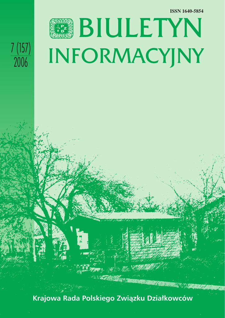 ISSN 1640-5854 7 (157) 2006 BIULETYN INFORMACYJNY Krajowa Rada Polskiego Związku Działkowców SPIS TREŚCI I. XXI zebranie Krajowej Rady PZD. . 1 1. Informacja. . . . . . . . . . . . . . . . . . . . . . . . . . . . . . . . . . . . . . . . . . . 2. Omówienie zebrania. . . . . . . . . . . . . . . . . . . . . . . . . . . . . . . . . . . 3. Dokumenty dostarczone członkom KR PZD. . . . . . . . . . . . . . . . 4. Dokumenty przyjęte przez KR PZD. . . . . . . . . . . . . . . . . . . . . . . 1 1 3 8 II. Przypomnienia organizacyjne. . . 13 1. Obowiązki Zarządu ROD po odbyciu walnego zebrania sprawozdawczo-wyborczego. . . . . . . . . . . . . . . . . . . . 2. Uwierzytelnienie kopii dokumentów po walnym zebraniu. . . . . . . . . . . . . . . . . . . . . . . . . . . . . . . . . . 3. Ulotka Prezydium KR PZD . . . . . . . . . . . . . . . . . . . . . . . . . . . . 4. Broszura z ustawą o ROD i komentarzem w dalszym ciągu do dostania w siedzibie Zarządu ROD. . . . . . . . . . . . . . . . . . . . 5. Informator Działkowca. . . . . . . . . . . . . . . . . . . . . . . . . . . . . . . . 13 13 14 14 14 III. Porady prawne. . . . . . . . . . . . . 15 IV. Konferencje Okręgowe PZD cd. . . . . . . . . . . . . . . . . . . . . 17 Konferencja Okręgowa w Bydgoszczy. . . . . . . . . . . . . . . . . . . . . . 1. Informacja . . . . . . . . . . . . . . . . . . . . . . . . . . . . . . . . . . . . . . . 2. Stanowiska podjęte na Konferencji. . . . . . . . . . . . . . . . . . . . Konferencja Okręgowa w Częstochowie . . . . . . . . . . . . . . . . . . . . 1. Informacja . . . . . . . . . . . . . . . . . . . . . . . . . . . . . . . . . . . . . . . 2. Tezy z referatu. . . . . . . . . . . . . . . . . . . . . . . . . . . . . . . . . . . . 3. Stanowiska podjęte na Konferencji. . . . . . . . . . . . . . . . . . . . Konferencja Okręgowa w Elblągu . . . . . . . . . . . . . . . . . . . . . . . . . 1. Informacja . . . . . . . . . . . . . . . . . . . . . . . . . . . . . . . . . . . . . . . 2. Stanowiska podjęte na Konferencji. . . . . . . . . . . . . . . . . . . . Konferencja Okręgowa w Gdańsku . . . . . . . . . . . . . . . . . . . . . . . . 1. Informacja . . . . . . . . . . . . . . . . . . . . . . . . . . . . . . . . . . . . . . . 2. Referat Prezesa OZ PZD w Gdańsku Stanisława Szczepanika. . . . . . . . . . . . . . . . . . . . . . . . . . . . . . 3. Stanowiska podjęte na Konferencji. . . . . . . . . . . . . . . . . . . . Konferencja Okręgowa w Gorzowie Wlkp. . . . . . . . . . . . . . . . . . . 1. Informacja . . . . . . . . . . . . . . . . . . . . . . . . . . . . . . . . . . . . . . . 2. Referat. . . . . . . . . . . . . . . . . . . . . . . . . . . . . . . . . . . . . . . . . . 3. Stanowiska podjęte na Konferencji. . . . . . . . . . . . . . . . . . . . Konferencja Okręgowa w Kaliszu . . . . . . . . . . . . . . . . . . . . . . . . . 1. Informacja . . . . . . . . . . . . . . . . . . . . . . . . . . . . . . . . . . . . . . . 2. Tezy z referatu. . . . . . . . . . . . . . . . . . . . . . . . . . . . . . . . . . . . 3. Stanowiska podjęte na Konferencji. . . . . . . . . . . . . . . . . . . . Konferencja Okręgowa w Legnicy. . . . . . . . . . . . . . . . . . . . . . . . . 1. Informacja . . . . . . . . . . . . . . . . . . . . . . . . . . . . . . . . . . . . . . . 2. Stanowiska podjęte na Konferencji. . . . . . . . . . . . . . . . . . . . Konferencja Okręgowa w Lublinie. . . . . . . . . . . . . . . . . . . . . . . . . 1. Informacja . . . . . . . . . . . . . . . . . . . . . . . . . . . . . . . . . . . . . . . 2. Referat Prezesa OZ PZD w Lublinie Stanisława Chodaka. . . . . . . . . . . . . . . . . . . . . . . . . . . . . . . . 3. Stanowiska podjęte na Konferencji. . . . . . . . . . . . . . . . . . . . Konferencja Okręgowa w Łodzi. . . . . . . . . . . . . . . . . . . . . . . . . . . 1. Informacja . . . . . . . . . . . . . . . . . . . . . . . . . . . . . . . . . . . . . . . 2. Tezy z referatu Prezesa OZ PZD w Łodzi Izabelli Ożegalskiej. . . . . . . . . . . . . . . . . . . . . . . . . . . . . . . . . 3. Stanowiska podjęte na Konferencji. . . . . . . . . . . . . . . . . . . . Konferencja Okręgowa w Krakowie. . . . . . . . . . . . . . . . . . . . . . . . 1. Informacja . . . . . . . . . . . . . . . . . . . . . . . . . . . . . . . . . . . . . . . 2. Stanowiska podjęte na Konferencji. . . . . . . . . . . . . . . . . . . . Konferencja Okręgowa Warmińsko-Mazurska w Olsztynie. . . . . . 1. Informacja . . . . . . . . . . . . . . . . . . . . . . . . . . . . . . . . . . . . . . . 2. Stanowiska podjęte na Konferencji. . . . . . . . . . . . . . . . . . . . Konferencja Okręgowa w Opolu. . . . . . . . . . . . . . . . . . . . . . . . . . . 1. Informacja . . . . . . . . . . . . . . . . . . . . . . . . . . . . . . . . . . . . . . . 2. Referat Prezesa OZ PZD w Opolu Antoniny Boroń. . . . . . . . . . . . . . . . . . . . . . . . . . . . . . . . . . . . 3. Stanowiska podjęte na Konferencji. . . . . . . . . . . . . . . . . . . . Konferencja Okręgowa w Pile . . . . . . . . . . . . . . . . . . . . . . . . . . . . 1. Informacja . . . . . . . . . . . . . . . . . . . . . . . . . . . . . . . . . . . . . . . 17 17 17 19 19 19 20 23 23 23 24 24 24 26 27 27 27 30 32 32 32 33 33 33 33 36 36 36 38 41 41 42 43 45 45 45 48 48 48 49 49 49 52 54 54 2. Tezy z referatu. . . . . . . . . . . . . . . . . . . . . . . . . . . . . . . . . . . . 3. Stanowiska podjęte na Konferencji. . . . . . . . . . . . . . . . . . . . Konferencja Okręgowa w Poznaniu. . . . . . . . . . . . . . . . . . . . . . . . 1. Informacja . . . . . . . . . . . . . . . . . . . . . . . . . . . . . . . . . . . . . . . 2. Stanowiska podjęte na Konferencji. . . . . . . . . . . . . . . . . . . . Konferencja Okręgowa w Rzeszowie. . . . . . . . . . . . . . . . . . . . . . . 1. Informacja . . . . . . . . . . . . . . . . . . . . . . . . . . . . . . . . . . . . . . . 2. Tezy z dyskusji. . . . . . . . . . . . . . . . . . . . . . . . . . . . . . . . . . . . Konferencja Okręgowa w Słupsku. . 
