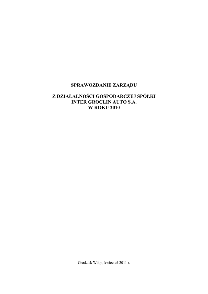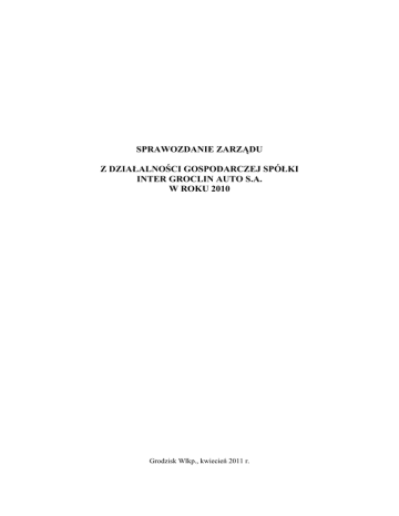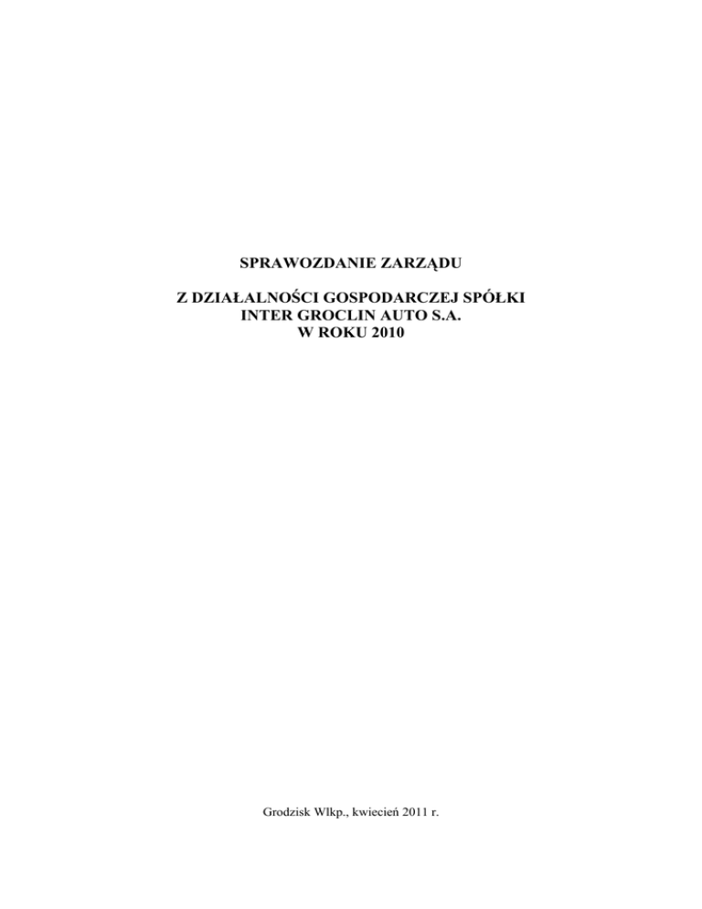 Sprawozdanie Zarządu z działalności Spółki Inter Groclin Auto