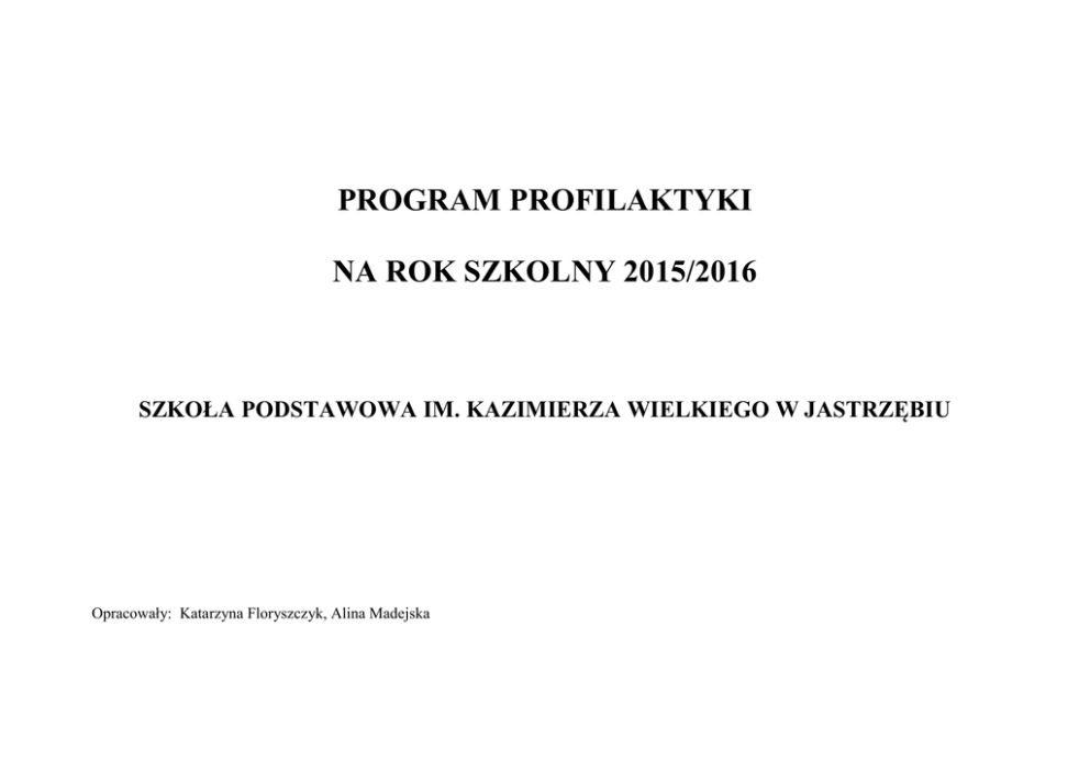 program profilaktyki na rok szkolny 2015/2016 szkoła podstawowa