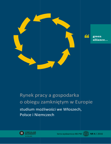 green alliance… Rynek pracy a gospodarka o obiegu zamkniętym w Europie studium możliwości we Włoszech, Polsce i Niemczech Seria wydawnicza IBS PW NR 4 / 2016 2 Rynek pracy a gospodarka o obiegu zamkniętym w Europie studium możliwości we Włoszech, Polsce i Niemczech Warszawa, styczeń 2016 Tytuł oryginału: Unemployment and the circular economy in Europe: a study of opportunities in Italy, Poland and Germany Autorzy: Emily Coats i Dustin Benton Podziękowania Podziękowania otrzymują Jasper Keech i Micol Salmeri za wykonane dodatkowe studia, Jonny Hazell za wnikliwe wglądy oraz Peter Mitchell i Keith James z WRAP za rady dotyczące gromadzenia danych. Jesteśmy wdzięczni Mava Foundation za sfinansowanie tego opracowania. Green Alliance Green Alliance jest nie nastawionym na zysk, niezależnym ciałem doradczym skupiającym się na ambitnym przywództwie na rzecz środowiska. Mamy za sobą 35 lat współpracy z najbardziej wpływowymi liderami z sektora pozarządowego, gospodarki i polityki. Nasza praca tworzy nowe myślenie i dialog i wzmogła działania polityczne i wsparcie dla rozwiązań na rzecz środowiska we Wlk. Brytanii. Green Alliance 36 Buckingham Palace Road, London, SW1W 0RE 020 7233 7433 [email protected] www.green-alliance.org.uk blog: greenallianceblog.org.uk twitter: @GreenAllianceUK Opublikowane przez Green Alliance, grudzień 2015 Projekt: Howdy ISBN 978-1-909980-56-3 © Green Alliance, 2015 Praca Green Alliance jest udostępniana na zasadzie nie wspieranej licencji Creative Commons: Uznanie autorstwa-Użycie niekomercyjne-Bez utworów zależnych 3.0. Nie zastępuje ona praw autorskich lecz udziela określonych praw bez potrzeby zwracania się o zgodę do Green Alliance. W ramach tej licencji można bez ograniczeń dzielić się naszą pracą. Zapewnia to swobodę kopiowania, rozpowszechniania i przekazywania tej pracy innym osobom, pod warunkiem wskazania autorstwa Green Alliance oraz niezmieniania tekstu. Pracy nie wolno odsprzedawać ani wykorzystywać w celach komercyjnych. Te warunki mogą ulec zmianie w określonych okolicznościach za pisemną zgodą Green Alliance. Więcej informacji na temat tej licencji dostępne na http://creativecommons.org/licenses/by-nc-nd/3.0/ The Green Alliance Trust jest organizacją dobroczynną zarejestrowaną pod nr 1045395 oraz spółką z ograniczoną odpowiedzialnością (Anglia i Walia) 3037633, zarejestrowaną pod powyższym adresem. __________________________________________________________________________________ Redakcja przekładu polskiego: Tłumaczenie: Zbigniew Becker Współpraca: Tomasz Szczygielski Skład: Edyta Kryszkiewicz Wydano dzięki wsparciu: Stowarzyszenia Polska Unia Ubocznych Produktów Spalania w ramach projektu: CircularEconomy.pl Do bezpłatnej dystrybucji. 2 Zawartość Streszczenie wykonawcze 4 1 Wyzwania dla rynku pracy UE 5 2 Gospodarka o obiegu zamkniętym a tworzenie zatrudnienia 7 3 Trzy scenariusze gospodarki o obiegu zamkniętym na rok 2030 9 4 Scenariusze zatrudnienia we Włoszech, Polsce i Niemczech 10 Wnioski 22 Aneks 23 Przypisy 26 3 Streszczenie wykonawcze Ambitna strategia gospodarki o obiegu zamkniętym mogłaby przywrócić do pracy co najmniej 270.000 osób bezrobotnych we Włoszech, Polsce i Niemczech, pozwalając zaoszczędzić co najmniej 3 mld € na kosztach bezrobocia. Jest tak dlatego, że miejsca pracy tworzone w gospodarce o obiegu zamkniętym, mogą odnosić się do strukturalnych barier zatrudnienia w tych gospodarkach. To studium zarysowuje sposób, w jaki rozwój gospodarki o obiegu zamkniętym mógłby tworzyć duże ilości miejsc pracy we wszystkich regionach i na wszystkich poziomach umiejętności, w dziedzinie recyklingu, napraw, wtórnego montażu, uusługowienia i biogospodarki. Co kluczowe, różni się ono od podobnych studiów, poprzez wykazywanie, iż wiele z owych miejsc pracy rozwiązywałoby utrzymujące się regionalne i zawodowe nierówności, a zatem stanowiłyby przyrost zatrudnienia netto – wydobywający ludzi z bezrobocia, nie zaś wypierający pracowników z już istniejących miejsc pracy. Pokazuje ono również, iż ponad 90 procent owych miejsc pracy istniałoby nadal po roku 2025, pomimo przewidywanego ‘wydrążania się’ rynku pracy, charakteryzującego się spadkiem liczby zawodów na średnim poziomie umiejętności. Przejście do gospodarki o obiegu zamkniętym będzie wyglądało inaczej w każdym kraju. Ukształtują je mocne strony przemysłu w danego kraju, jego priorytety gospodarcze i polityki lokalne. Dla zobrazowania tego, jak owo przejście mogłoby poprawić rynki pracy we Włoszech, Polsce i Niemczech, pokazujemy, w jaki sposób pakiet ambitnych polityk publicznych z zakresu gospodarki o obiegu zamkniętym mógłby: • podwoić aktywność biogospodarczych obiegów zamkniętych we Włoszech, rewitalizując gospodarkę rolną południa kraju i zmniejszając podział na północ i południe pod względem bezrobocia, poprzez zlokalizowanie dwóch trzecich z nowych miejsc pracy na południu kraju i na wyspach; • stworzyć warunki do pokonania dystansu pomiędzy wydajnością pracy w Polsce a w Europie zachodniej, poprzez wprowadzenie montażu wtórnego, obniżając bezrobocie w niektórych zawodach o ponad trzy procent; • pomóc niemieckim wytwórcom trwałych dóbr sprzedawać usługi zamiast wyrobów, tworząc przyrost miejsc pracy w miastach na północy i wschodzie Niemiec. W samej tylko MeklemburgiiPomorzu Przednim, okręgu wyborczym Pani Kanclerz Merkel, pozwoliłoby to na zaoszczędzenie 177 milinów € poprzez zmniejszenie liczby zasiłków dla bezrobotnych. Korzyści środowiskowe i oszczędności płynące z wydajności zasobowej już dostarczają wystarczającego uzasadnienia dla tego, żeby Europa zaczęła w większym stopniu opierać się na zasadach obiegu zamkniętego. Niniejsze studium pokazuje, iż działania z zakresu gospodarki o obiegu zamkniętym tworzą miejsca pracy w zawodach i regionach u