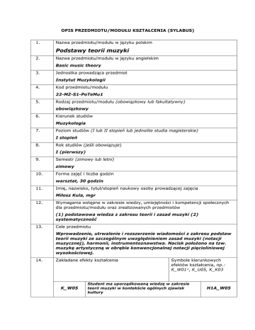 Podstawy teorii muzyki - Instytut Muzykologii UWr