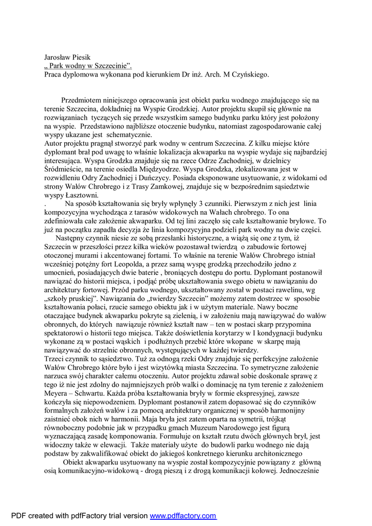 Jarosław Piesik „ Park wodny w Szczecinie”. Praca dyplomowa