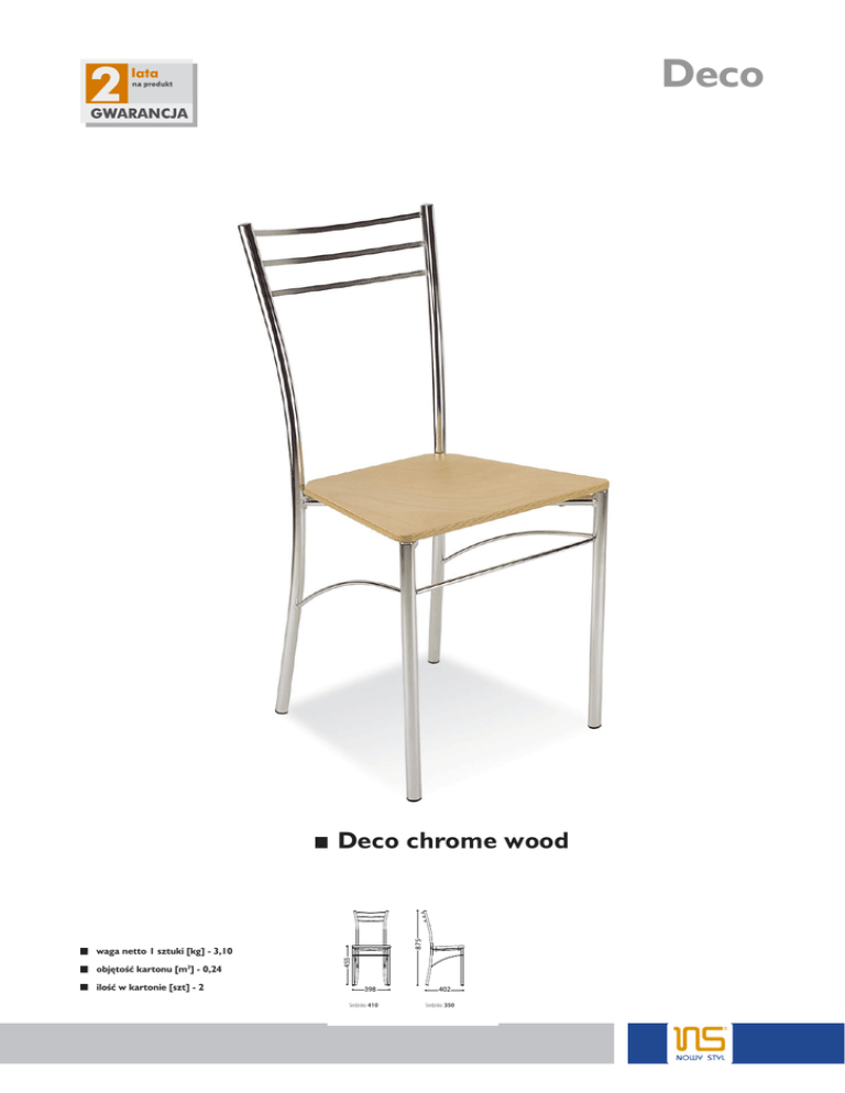 � Deco ���� objętość kartonu [m3] - 0,24 ilość w kartonie [szt] - 2 ��� ��� ��� waga netto 1 sztuki [kg] - 3,10 ��� Deco chrome wood Deco wood chrome ��� ��� Siedzisko: Siedzisko: 410410 ��� ��� Siedzisko: 366 Siedzisko: 350 ��������������������������������������������������������