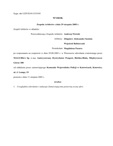 Sygn. akt UZP/ZO/0-2335/05 Zespołu Arbitrów z dnia 29