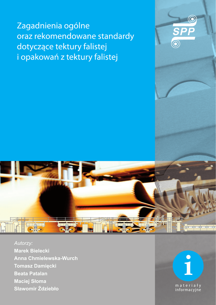 agadnienia ogólne az rekomendowane andardy dotyczące Zagadnienia ogólne ktury falistej oraz rekomendowane opakowań standardy dotyczące tektury falisteJ tektury falistej i opakowań z tektury falisteJ orzy: ek Bielecki a Chmielewska-Wurch Autorzy: PDV]'DPLĊFNL Marek Bielecki ta Patalan Anna Chmielewska-Wurch LHM6áRPD TRPDV]'DPLĊFNL ZRPLUħG]LHEáR Beata Patalan 0DFLHM6áRPD 6áDZRPLUħG]LHEáR materiały informacyjne Stowarzyszenie Papierników Polskich dziękuje wszystkim, którzy przyczynili się do powstania tej publikacji. korekta merytoryczna: dr inż. Aleksander Klepaczka korekta językowa: mgr Joanna Wiatroszak DTP: Tomasz Perek Projekt okładek: Jacek Szymański wydawca: Stowarzyszenie Papierników Polskich © Copyright Stowarzyszenie Papierników Polskich Łódź 2011 Zagadnienia ogólne oraz rekomendowane standardy dotyczące tektury falistej i opakowań z tektury falistej Działalność Stowarzyszenia Papierników Polskich Stowarzyszenie Papierników Polskich jest organizacją o charakterze naukowo-technicznym i menedżerskim, skupiającą członków indywidualnych oraz podmioty gospodarcze, których działalność jest związana z papiernictwem i dziedzinami pokrewnymi. Misją Stowarzyszenia jest wspieranie rozwoju przemysłu papierniczego w Polsce oraz integrowanie środowiska papierników. Stowarzyszenie swoją działalność prowadzi w czterech Sekcjach: Techniki, Papieru, Tektury Falistej i Infrastruktury. Na rzecz swoich członków SPP prowadzi działalność obejmującą: prezentowanie stanowiska Stowarzyszenia oraz występowanie z wnioskami, opiniami i postulatami do administracji państwowej, organizacji samorządu gospodarczego oraz biznesu i innych; monitorowanie prawa i opiniowanie dokumentów powstających w jednostkach centralnych dotyczących papiernictwa i dziedzin z nim związanych; analizę warunków zaopatrzenia przemysłu papierniczego w surowce; wspieranie rozwoju recyklingu zużytych papierów i tektur oraz ich odpadów; prowadzenie analiz dotyczących Najlepszych Dostępnych Technik dla przemysłu papierniczego; sprawy energetyczne, w tym OZE; opiniowanie zmian w ustawach podatkowych, a także edukację ekologiczną. W ramach współpracy z zagranicą SPP jest członkiem CEPI (Confederation of European Paper Industries) oraz w FEFCO (European Federation of Corrugated Board Manufacturers), a także utrzymuje tradycyjne kontakty z naukowo-technicznymi organizacjami papierniczymi na świecie, takimi jak TAPPI w USA, PPTAC w Kanadzie, PITA w Wielkiej Brytanii, FPEA w Finlandii, SPCI w Szwecji, ZELLCHEMING w Niemczech, ATIP we Francji i IPH w Brukseli. Sekcja Techniki SPP zrzesza członków indywidualnych i wspierających. Działalność Sekcji obejmuje: organizację konferencji, sympozjum i szkoleń, działalność wydawniczą, historyczną, Zespołu Rzeczoznawców. Sekcja Papieru SPP zrzesza podmioty gospodarcze (członków wspierających SPP) – produkujące masy włókniste, papier i tekturę. Do SPP należy 13 przedsiębiorstw produkujących łącznie 80% krajowej produkcji papieru i tektury. W ramach działalności merytorycznej Sekcja Papieru współpracuje z firmą konsultingową w zakresie monitorowania procesu stanowienia prawa ekologicznego oraz doradztwa w ustalaniu kierunków zmian w przepisach prawnych istotnych dla branży papierniczej. Sekcja Tektury Falistej Stowarzyszenia Papierników Polskich zrzesza podmioty gospodarcze (członków wspierających SPP) – producentów lub/i przetwórców tektury falistej. Obecnie do Sekcji należy 16 firm, których łączna produkcja tektury falistej 3 Zagadnienia ogólne oraz rekomendowane standardy dotyczące tektury falistej i opakowań z tektury falistej stanowi około 82% produkcji krajowej tego asortymentu. Zakres działalności Sekcji obejmuje między innymi działania w obszarach wspólnych zainteresowań, w tym: promocję opakowań z tektury falistej oraz propagowanie tektury falistej jako produktu w pełni odnawialnego i przyjaznego dla środowiska. W ramach promowania opakowań z tektury falistej zaprojektowano specjalne logo „Opakowania z papieru to jakość zgodna z naturą”. Znak w różnych wersjach kolorystycznych uzyskał prawa ochronne i obecnie jest wykorzystywany przez członków Sekcji do promowania opakowań z papieru. W zakresie działalności Sekcji organizowane są ponadto szkolenia o tematyce związanej z zainteresowaniami członków Sekcji. Sekcja Infrastruktury SPP zrzesza następujące podmioty gospodarcze (członków wspierających SPP): jednostki dydaktyczne i badawczo-rozwojowe, biura inżyniersko-projektowe, firmy handlowe, przedsiębiorstwa produkujące maszyny i urządzenia, świadczące usługi dla przemysłu papierniczego lub przetwarzające wyroby branży papierniczej. W ramach działalności zespołu ekspertów, między innymi, wspierana jest działalność Technicznej Grupy Roboczej ds. Produkcji Papieru i Celulozy. Prace grupy związane z procesem nowelizacji dokumentu referencyjnego dla najlepszych dostępnych technik w przemyśle celulozowo – papierniczym, tzw. BREF, a przewodniczącym tej grupy jest ekspert SPP. 4 Zagadnienia ogólne oraz rekomendowane standardy dotyczące tektury falistej i opakowań z tektury falistej 5 Zagadnienia ogólne oraz rekomendowane standardy dotyczące tektury falistej i opakowań z tektury falistej 6 Zagadnienia ogólne oraz rekomendowane standardy dotyczące tektury falistej i opakowań z tektury falistej 7 Zagadnienia ogólne oraz rekomendowane standardy dotyczące tektury falistej i opakowań z tektury falistej 8 Zagadnienia ogólne oraz rekomendowane standardy dotyczące tektury falistej i opakowań z tektury falistej 9 Zagadnienia ogólne oraz rekomendowane standardy dotyczące tektury falistej i opakowań z tektury falistej Spis treści Działalność Stowarzyszenia Papierników Polskich ................................................................................ 3 Recenzje ....................................