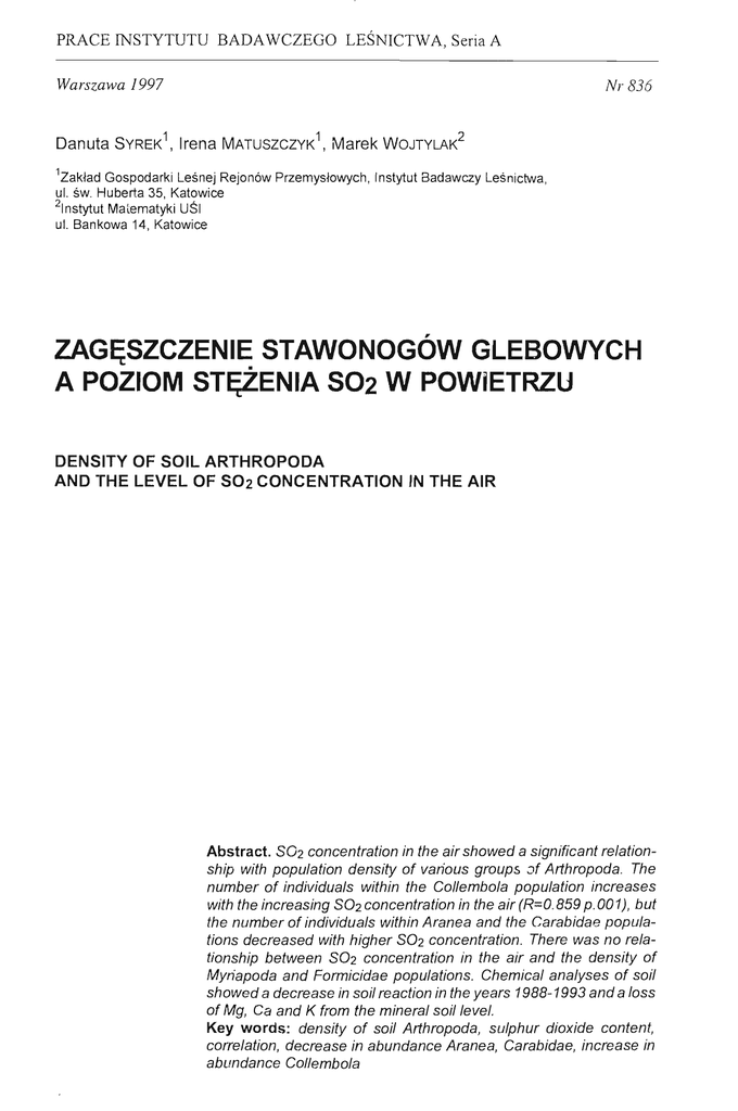 DENSITY OF SOIL ARTHROPODA AND THE LI;VEL OF S02 CONCENTRATION