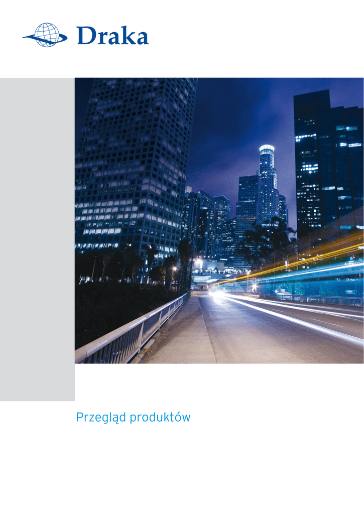 Przegląd produktów The best for your energy Draka Holding N.V. (Amsterdam, NL) została założona w 1910 roku, posiada 68 przedsiębiorstw w 30 różnych krajach, zatrudnia 10 000 pracowników i jest jednym z największych producentów kabli i przewodów na świecie. Od momentu utworzenia spółki Draka Kabely, s.r.o. (Velké Meziříčí, CZ) w 1994 roku, Draka z powodzeniem rośnie także na innych rynkach, Środkowej i Wschodniej Europy. Przez lata współpracy nasi klienci mogli przekonać się, że Draka Kabely, s.r.o. oferuje nie tylko najwyższej jakości produkty, lecz także najwyższej jakości usługi oraz indywidualne podejście do każdego klienta, które oferujemy i dostarczamy wraz ze wszystkimi produktami, jakie sprzedajemy. Dzięki aktywnemu, zorientowanym na klienta podejściu staliśmy się drugim co do wielkości producentem kabli i przewodów na czeskim rynku. Zbudowaliśmy dwa nowoczesne zakłady produkcyjne i doskonałe centrum logistyczne. Inwestycje te umożliwiają nam ekspansję na rynki Środkowej i Wschodniej Europy, gdzie reprezentujemy przedsiębiorstwo Draka. Naturalnie, posiadamy certyfikat systemu zarządzania jakością zgodnie z normą DIN EN ISO 9001 i ISO TS 16949 oraz stosujemy się do wymogów ochrony środowiska według ISO 14 001 Oferowany asortyment obejmuje: ❙ kable i przewody elektroenergetyczne do układania na stałe ❙ przewody elektroenergetyczne do odbiorników ruchomych i przenośnych ❙ kable dźwigowe ❙ kable dla systemów fotowoltaicznych ❙ kable bezhalogenowe i odporne na działanie ognia ❙ kable gumowe (harmonizowane, wg wymagań technicznych Draka, wg VDE) ❙ kable telekomunikacyjne i do transmisji danych ❙ kable średnich napięć ❙ przewody dla przemysłu samochodowego Przegląd asortymentu kabli i przewodów przedstawiamy na następnych stronach tego katalogu. Spis treści Przegląd produktów Przewody gołe miedziane i aluminiowe.................................................................................................................................................................................................................. 4 Przewody izolowane do energetycznych linii napowietrznych .................................................................................................................................................... 5 Przewody elektroenergetyczne do układania na stałe........................................................................................................................................................................... 5 Przewody elektroenergetyczne do odbiorników ruchomych i przenośnych.................................................................................................................. 7 Kable elektroenergetyczne 0,6/1 kV......................................................................................................................................................................................................................... 10 Kable elektroenergetyczne 0,6/1 kV bezhalogenowe.............................................................................................................................................................................. 13 Kable bezhalogenowe i odporne na działanie ognia 0,6/1 kV. .......................................................................................................................................................14 Kable średniego napięcia........................................................................................................................................................................................................................................................16 Kable do falowników.................................................................................................................................................................................................................................................................... 18 Kable kontrolne, sterownicze i sygnalizacyjne................................................................................................................................................................................................19 Kable telekomunikacyjne....................................................................................................................................................................................................................................................... 26 Kable optotelekomunikacyjne (światłowody).................................................................................................................................................................................................. 26 Kable współosiowe (koncentryczne)......................................................................................................................................................................................................................... 27 Kable do przesyłu danych..................................................................................................................................................................................................................................................... 27 Kable fotowoltaiczne dla systemów solarnych.............................................................................................................................................................................................. 27 Kable gumowe wg warunków technicznych DRAKA.............................................................................................................................................................................. 28 Kable dla taboru kolejowego......................................................................................................................................................................................................
