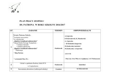 PLAN PRACY ZESPOŁU DS. PATRONA W ROKU SZKOLNY 2016