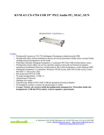 KVM 4/1 CS-1754 USB 19" PS/2 Audio PC, MAC, SUN