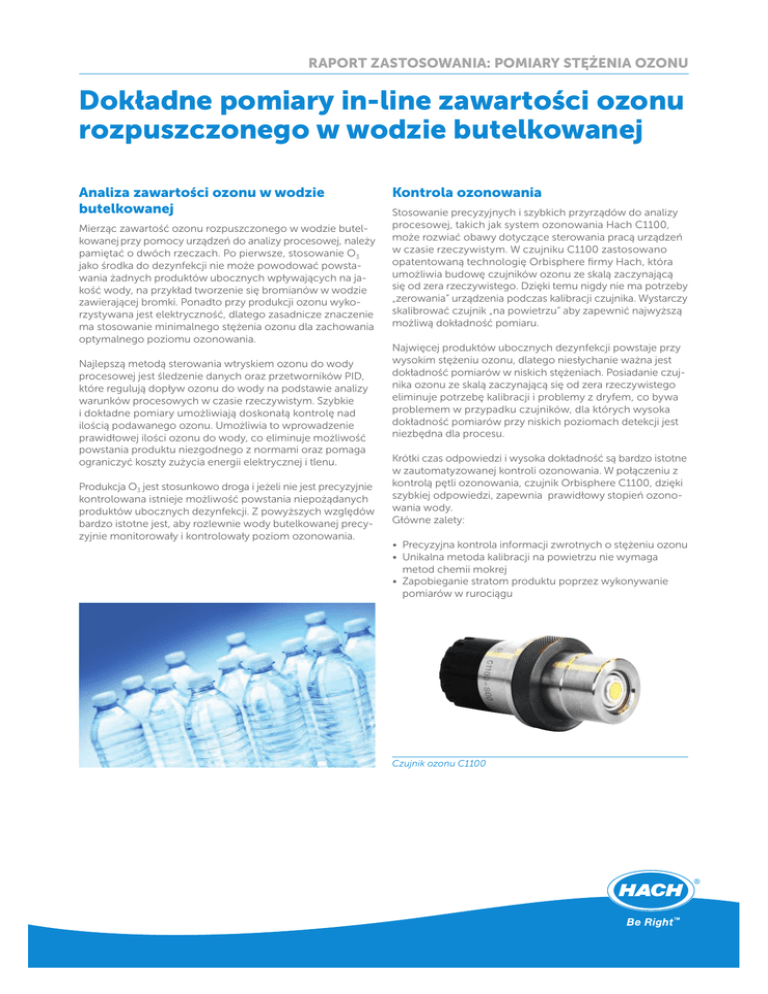 Dokładne pomiary in-line zawartości ozonu rozpuszczonego w