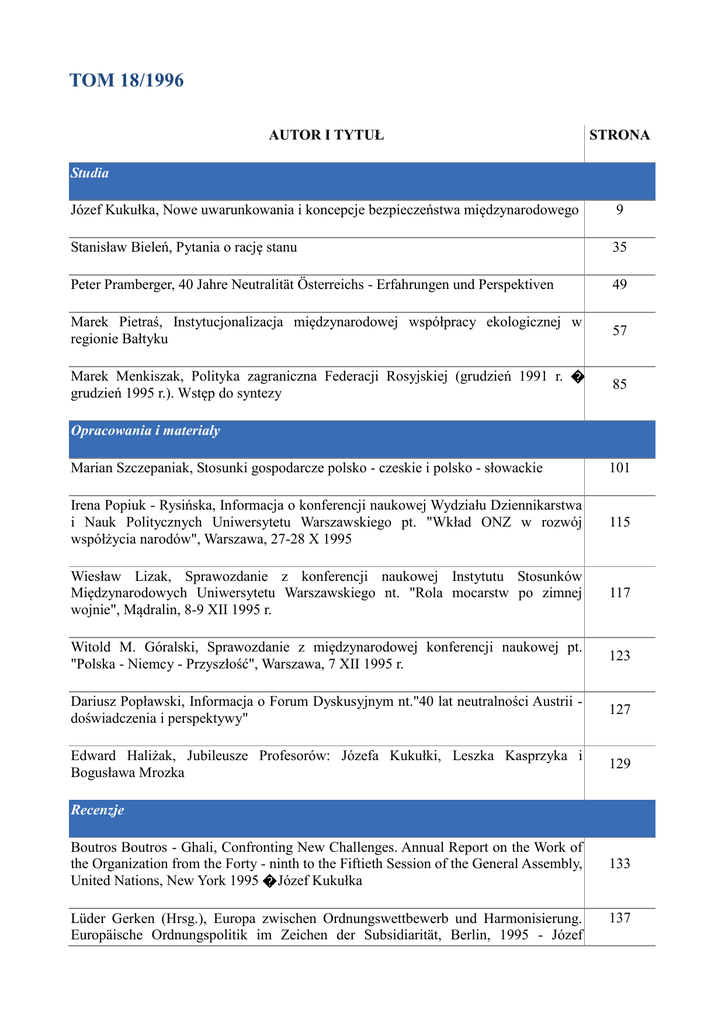 TOM 18/1996 - Instytut Stosunków Międzynarodowych