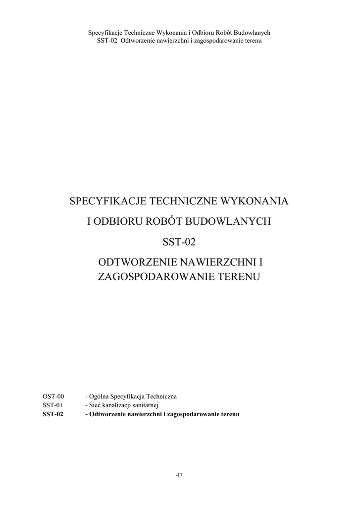 specyfikacje techniczne wykonania i odbioru robót budowlanych sst