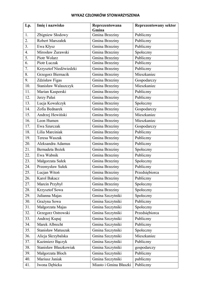 LISTA CZŁONKÓW STOWARZYSZENIA