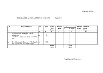 ZAŁĄCZNIK NR 2 FORMULARZ ASORTYMENTOWO – CENOWY