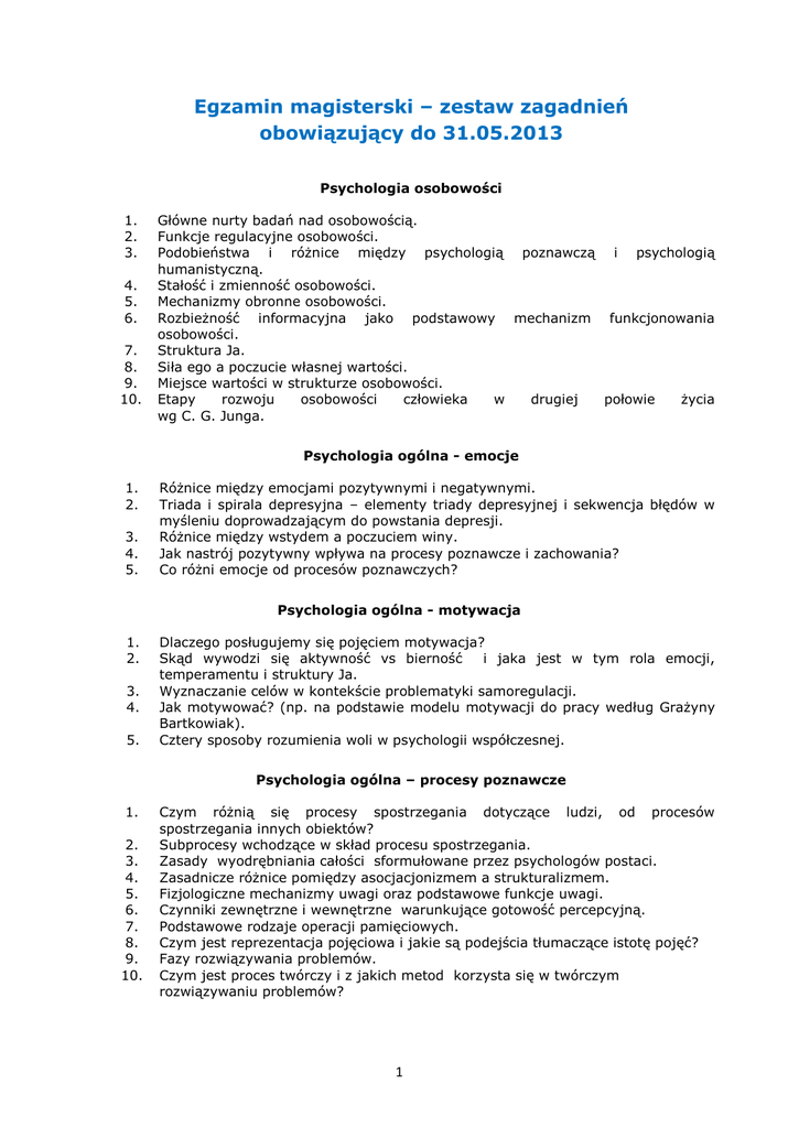 Egzamin magisterski – zestaw zagadnień obowiązujący do 31.05