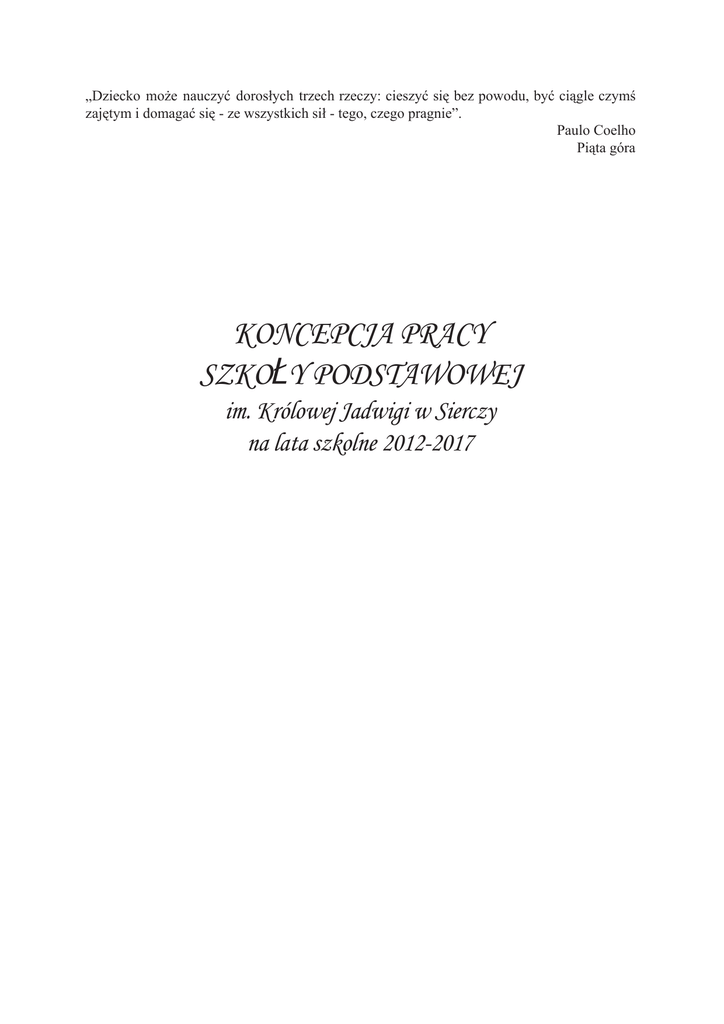 Koncepcja pracy szkoły - Szkoła Podstawowa im. Królowej Jadwigi
