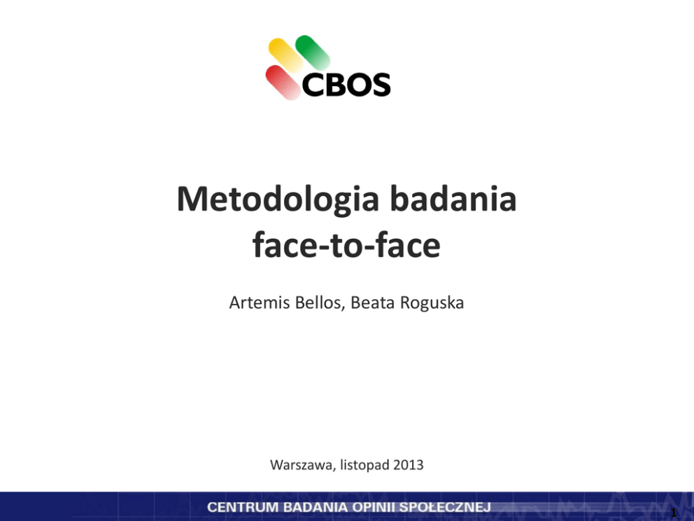 Metodologia badania face-to-face Artemis Bellos, Beata Roguska Warszawa, listopad 2013 1 CBOS – co nas wyróżnia? Próba imienna losowana z operatu PESEL 2 Czy sondaże realizowane metodą face-to-face są jeszcze potrzebne? Kiedy, w jakich sytuacjach korzystać z badań f2f; kiedy, w jakich sytuacjach korzystać z innych technik zbierania danych? 3 Specyfika badań f2f • Realizacja długich kwestionariuszy • Możliwość zebrania obszernego materiału badawczego (i możliwość dokonywania wielu analiz) • Możliwość uzyskania wyników reprezentatywnych dla całego społeczeństwa • Względnie wysoki koszt badania • Względnie długi czas trwania badania • Interakcja między ankieterem i respondentem 4 FREKWENCJA W WYBORACH PREZYDENCKICH W 2010 ROKU 78% 68% 66% 54,94% 55,31% I tura Odsetek osób deklarujących udział w wyborach prezydenckich – ostatni pomiar przed wyborami Rzeczywista frekwencja Odsetek osób deklarujących ex post udział w wyborach II tura WYNIKI GŁOSOWANIA W II TURZE WYBORÓW PREZYDENCKICH W 2010 ROKU 46,99% 58,8% 53,01% 37,2% 1,1% 0,5% dane PKW 2,4% deklaracje powyborcze Jarosław Kaczyński Bronisław Komorowski Oddałe(a)m głos nieważny, na żadnego z nich Trudno powiedzieć Odmowa odpowiedzi (odsetki głosów ważnych) 5 Realizacja badań statutowych 2005-2012 średnia 100% 90% 80% 70% 60% 50% 40% 30% 20% 10% 0% 57,87% 2005 52,32% 2006 47,06% 47,70% 45,47% 2007 2008 2009 42,15% 44,46% 41,97% 2010 2011 2012 6 Przyczyny niezrealizowania ankiet w 18 badaniach pesel w 2012 roku Przyczyny braku realizacji Wylosowany respondent nieobecny/nieuchwytny przez cały okres realizacji badania Wylosowany respondent odmówił wzięcia udziału w badaniu Wylosowany respondent zmienił miejsce zamieszkania i nie można się z nim skontaktować Pod adresem z próby nikogo nie zastano przez cały okres realizacji badania Wylosowany respondent jest niesprawny w stopniu uniemożliwiającym przeprowadzenie wywiadu Wywiad nie został zrealizowany z innych powodów Wylosowany respondent nie żyje Błędny adres (np. wskazany w próbie adres nie istnieje) Wylosowany respondent nie spełnia kryteriów badania Liczba przypadków Odsetek niezrealizowanych ankiet (29 753) Odsetek założonej próby (50 926) 8 341 28,03% 16,38% 8 339 28,03% 16,37% 5 485 18,44% 10,77% 3 955 13,29% 7,77% 1 490 5,01% 2,93% 1 410 4,74% 2,77% 371 1,25% 0,73% 310 1,04% 0,61% 52 0,17% 0,10% 7 Badania f2f na próbach losowych (PESEL) – co robimy, żeby ograniczyć negatywne skutki, a zmaksymalizować efekt pozytywny STANDARDOWE CZYNNOŚCI, TOWARZYSZĄCE KAŻDEMU BADANIU: 1) wylosowanie próby z operatu PESEL, zgodnie z założeniami właściwymi dla danego badania 2) zawieszenie próby w systemie koordynatorskim, w tzw. planie badań – co daje koordynatorom możliwość wcześniejszego, racjonalnego rozplanowania pracy w terenie 3) zaadresowanie i wysłanie – na min. tydzień przed rozpoczęciem terenowej realizacji – kart lub listów zapowiednich 4) odzewem na listy są telefony od respondentów lub ich rodzin; w trakcie rozmów staramy się przekonywać naszych rozmówców do udziału w badaniu 5) testowanie skryptu ankiety oraz realizacja min. jednego wywiadu pilotażowego, co służy sprawdzeniu poprawności narzędzia pod względem logicznym i merytorycznym, ale także oszacowaniu faktycznej długości ankiety i co za tym idzie – adekwatnego wynagrodzenia za pracę ankietera, oraz zidentyfikowaniu potencjalnych trudności mogących wystąpić w trakcie realizacji wywiadów 6) przygotowanie – m.in. na podst. (5) – szczegółowej instrukcji dla ankietera, a także odrębnego pisma do koordynatorów regionalnych, zawierających informacje niezbędne do poprawnej (zgodnej z naszymi oczekiwaniami) realizacji badania Badania f2f na próbach losowych (PESEL) – co robimy, żeby ograniczyć negatywne skutki, a zmaksymalizować efekt pozytywny STANDARDOWE CZYNNOŚCI, TOWARZYSZĄCE KAŻDEMU BADANIU (cd.): 7) zawieszenie na serwerze kompletu dokumentów niezbędnych do poprawnej realizacji, poinformowanie wszystkich koordynatorów o badaniu, w razie potrzeby przeprowadzane są dodatkowe, telefoniczne lub mailowe, szkolenia uzupełniające 8) codzienne monitorowanie pracy ankieterów i koordynatorów, a w razie dostrzeżenia zagrożeń – natychmiastowe reagowanie 9) szeroko zakrojona kontrola pracy ankieterów, wykraczająca poza wymagania minimalne pkjpa – której efektem jest wprowadzanie sankcji wobec osób łamiących zasady pracy; najboleśniejszą z nich jest usunięcie z sieci lub odsunięcie od badań na czas określony 10) natychmiastowe – po zakończeniu kontroli badania – rozliczanie pracy ankieterów i koordynatorów, często kredytowane przez CBOS Badania f2f na próbach losowych (PESEL) – co robimy, żeby ograniczyć negatywne skutki, a zmaksymalizować efekt pozytywny INNE DZIAŁANIA O CHARAKTERZE MOTYWACYJNYM: • zróżnicowanie stawek za ankiety w zależności od efektywności ankietera (tzn. za przekroczenie określonego RR – ankieter jest wynagradzany wg wyższej stawki jednostkowej) • zróżnicowanie prowizji koordynatorskiej w zależności od stopnia RR osiągniętego w badaniu przez podległą koordynatorowi sieć ankieterską • coroczny ranking ankieterów oraz koordynatorów (uwzględniający głównie RR osiągnięty w danym roku oraz wyniki kontroli) – w wyniku którego kilku koordynatorów i kilkunastu ankieterów zostaje publicznie wyróżnionych (pisemne podziękowania plus nagrody finansowe) • coraz częściej w budżetach badań przewidujemy nagrody dla respondentów za poświęcenie czasu na udział w badaniu • coroczne konsultacje z koordynatorami (a za ich pośrednictwem – z ankieterami) w sprawie największych bolączek, utrudnień i problemów w wykonywanej przez nich pracy oraz propozycji rozwiązań tych problemów; wszystkie uwagi zostają przeanalizowane przez Zespół Realizacji oraz dyrekcję firmy, staramy się – w mia