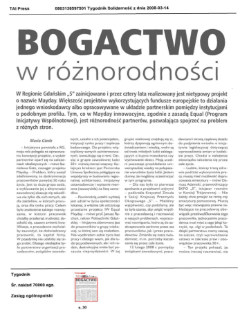 0803138597501 Tygodnik Solidarność z dnia 2008-03-14 TAI Press BOGACTWO w różnorodności W Regionie Gdańskim „S" zainicjowano i przez cztery lata realizowany jest nietypowy projekt o nazwie Mayday. Większość projektów wykorzystujących fundusze europejskie to działania jednego wnioskodawcy albo opracowywane w układzie partnerskim pomiędzy instytucjami o podobnym profilu. Tym, co w Mayday innowacyjne, zgodnie z zasadą Eąual (Program Inicjatywy Wspólnotowej), jest różnorodność partnerów, pozwalająca spojrzeć na problem z różnych stron. wych, uczelni z ich potencjałem, grupie wiekowej znajdują się ci, instytucji rynku pracy i zaplecza którzy dysponują ogromnym do- Inicjatywa powstała z RG, badawczego. Do projektu włą- świadczeniem i wiedzą, wolni są moja rola polegała na opracowa- czyliśmy samych zainteresowa- od trosk młodych ludzi zabieganiu koncepcji projektu, a wybór nych, konsultując się z nimi. Dzi- jących o kupno mieszkania czy partnerów opart się na założe- siaj o grupie zawodowej ludzi wychowanie dzieci. Misją uczelniach idealistycznych - mówi Sta- 50+ mówią niemal wszyscy. Ko- ni pozostaje przekładanie uninisława Gatz, menager projektu lejnym krokiem jest Pomorska wersyteckiej wiedzy na polepszeMayday. - Problem, który został Umowa Społeczna polegająca na nie warunków życia ludzi. Jestem zdefiniowany, to dyskryminacja współpracy w budowaniu regio- dumny, że mogliśmy uczestniczyć pracowników powyżej 50 roku nalnej solidarności, inicjatywy w tym programie. życia. Jest to duża grupa osób, ustawodawcze i wpisanie men- Dla nas było to pierwsze a wykluczanie jej z aktywności tora (nauczyciela) na listę zawo- spotkanie z projektami unijnymi - podkreśla Krzysztof Żmuda zawodowej okazuje się szkodli- dów. we nie tylko dla nich samych, ale - Powinnością uczelni wyższej z Sekcji Krajowej Przemysłu dla zakładów, w których pracu- jest udział w życiu społeczności Okrętowego „S". - Mieliśmy ją, oraz dla rynku pracy. Celem lokalnej, a właśnie tak odczytuję wątpliwości, czy podołamy, ale było znalezienie takiego rozwią- przesłanie projektu IW Equal to była szansa, aby usiąść wspólzania, w którym pracownik Mayday - mówi prof. Janusz Ra- nie z pracodawcą i rozmawiać chciałby przełamać trudności, do- choń, rektor Politechniki Gdań- o naszych problemach, wypracoszkolić się, czasem zmienić kwa- skiej. - Inicjatywa skierowana jest wać rozwiązania, które są do zalifikacje, a pracodawca zechciał- do pracowników z grupy wieko- akceptowania zarówno przez nas by zauważyć, że doświadczony wej, w której sam się znalazłem. pracowników, jak i przez pracopracownik, to kapitał firmy. Nie wyobrażam sobie życia bez dawców. Zmieniła się nasza świaW pojedynkę nie udałoby się te- pracy i dlatego wiem, jak dla lu- domość, m.in. potrzeby kształgo zrobić. Dlatego niezbędne by- dzi jej pozbawionych, ale i ich ro- cenia się przez całe życie. ło partnerstwo organizacji pra- dzin, destrukcyjne może być pol 2 lutego 2008 r. pomiędzy codawców, związków zawodo- czucie nieprzydatności. W tej związkami zawodowymi, praco- Maria Giedz Tygodnik BOGACTWO Śr. nakład 70000 egz. w różnorodności Zasięg ogólnopolski s. 30 dawcami i stroną rządową doszło do podpisania wniosku o inicjatywie legislacyjnej dotyczącej wprowadzenia zmian w kodeksie pracy. Chodzi o nałożenie obowiązku szkolenia się przez całe życie. - Ludzie, którzy tracą zdrowie podczas wykonywania pracy, muszą mieć możliwość dopracowania emerytury - mówi Dariusz Adamski, przewodniczący SKPO „S", inicjator rozmów w Komisji Trójstronnej. - Nie każdy chce przejść na rentę czy emeryturę pomostową. Muszą być więc rozwiązania prawne nakładające na pracodawcę obowiązek przekwalifikowania tego pracownika, jednocześnie pracodawca musi mieć z tego jakąś korzyść, np. ulgi w podatkach. To dzięki partnerstwu mamy szansę na sukces, czyli wprowadzenie ustawy w zakresie praw i obowiązków pracownika 50+. - Ten projekt pokazał, że można inaczej rozmawiać, nie TAI Press 0803138597502 Tygodnik Solidarność z dnia 2008-03-14 tylko przez pryzmat roszczeń mówi Stanisław Szczepanik ze Związku Pracodawców Forum Okrętowe. - Mayday pomógł uświadomić narn, że pracownik już zatrudniony, zwłaszcza ten z grupy 50+ jest bardziej cenny niż nowy, ponieważ jest doświadczony, twórczy, dyspozycyjny. Dlatego zainteresowała nas koncepcja liderów, mentorów. Chcielibyśmy dalej współpracować przy innych, nowych rozwiązaniach. - Nie udałoby się zrealizować tego projektu bez związków zawodowych i związku pracodawców — podkreśla dr Andrzej Szuwarzyński z PG. - Uczelnia nie jest w stanie pozyskać pracowników na szkolenia. Prowadzenie badań bez wejścia do firm byłoby niemożliwe. Szkolnictwo zawodowe upada, bo nauczyciel zawodu musi mieć nie tylko wyższe wykształcenie, ale i kwalifikacje pedagogiczne. Dlatego włączyliśmy się w przekwalifikowywanie pracowników z doświadczeniem na mentorów. - To nasze uczelnie są nastawione na nowe formy kształcenia i poszukiwania ludzi do kształ- go prac produkcji czy projektowania technocenia - dodaje dr inż. Zbigniew logii. Człowiek w wieWiśniewski z Akademii Morskiej. ku dojrzałym inaczej się uczy niż - Staramy się wykorzystać naszą młody, ma inny cel, inne tempo, wiedzę, żeby stworzyć taką ofer- ale to jest kapitał ludzki. Młody, tę, która pomoże tym ludziom aby być pełnowartościowym prazdobyć nowe kwalifikacje. Opra- cownikiem produkcji, musi się cowaliśmy system szkoleń na od- bardzo dużo od niego nauczyć. ległość i wzór, jak się w tym po- Ten starszy jest niezastąpiony, ale ruszać. w nowoczesnych metodach mło- W innych warunkach pro- dzież jest lepiej przygotowana, jekt się rodził, a w innych go koń- dlatego tak ważna jest współpraczymy - mówi dr hab. Jerzy Ku- ca międ