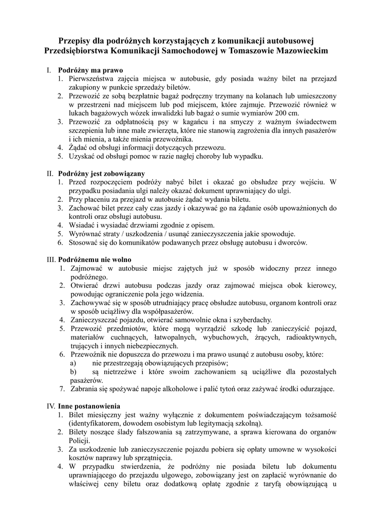 Przepisy dla podróżnych - Strona PKS Tomaszów Mazowiecki