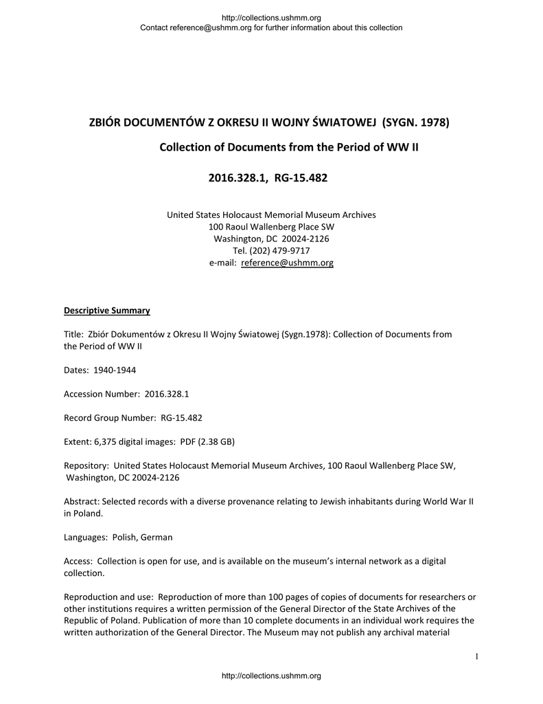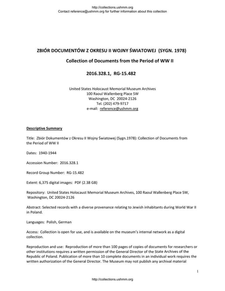 Collection of Documents from the Period of WW II 2016.328.1, RG-1
