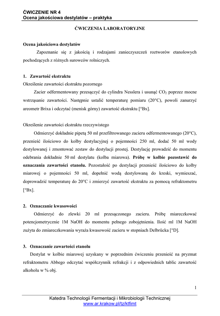 ĆWICZENIE NR 4 Ocena jakościowa destylatów – praktyka 1