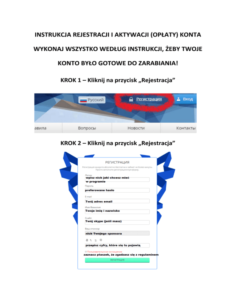 INSTRUKCJA REJESTRACJI I AKTYWACJI (OPŁATY) KONTA