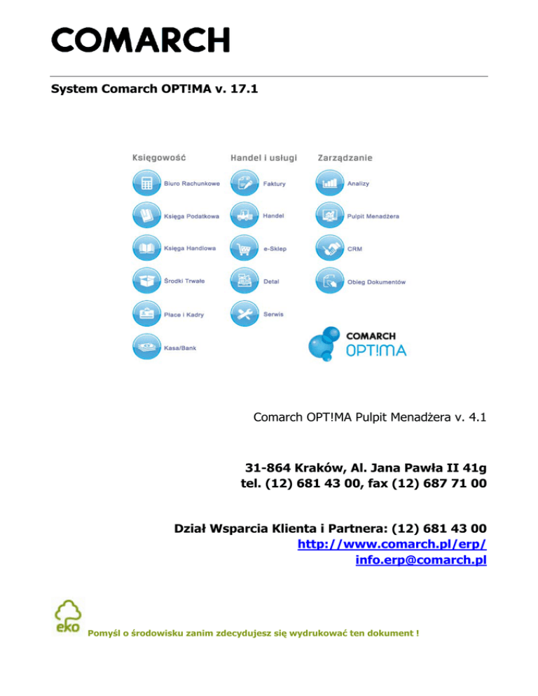 System Comarch OPT!MA v. 17.1 Comarch OPT!MA Pulpit