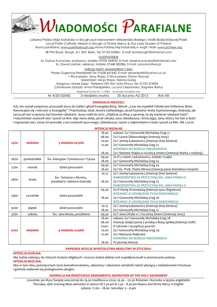 Wiadomości Parafialne - Lokalna Polska Misja Katolicka w Slough